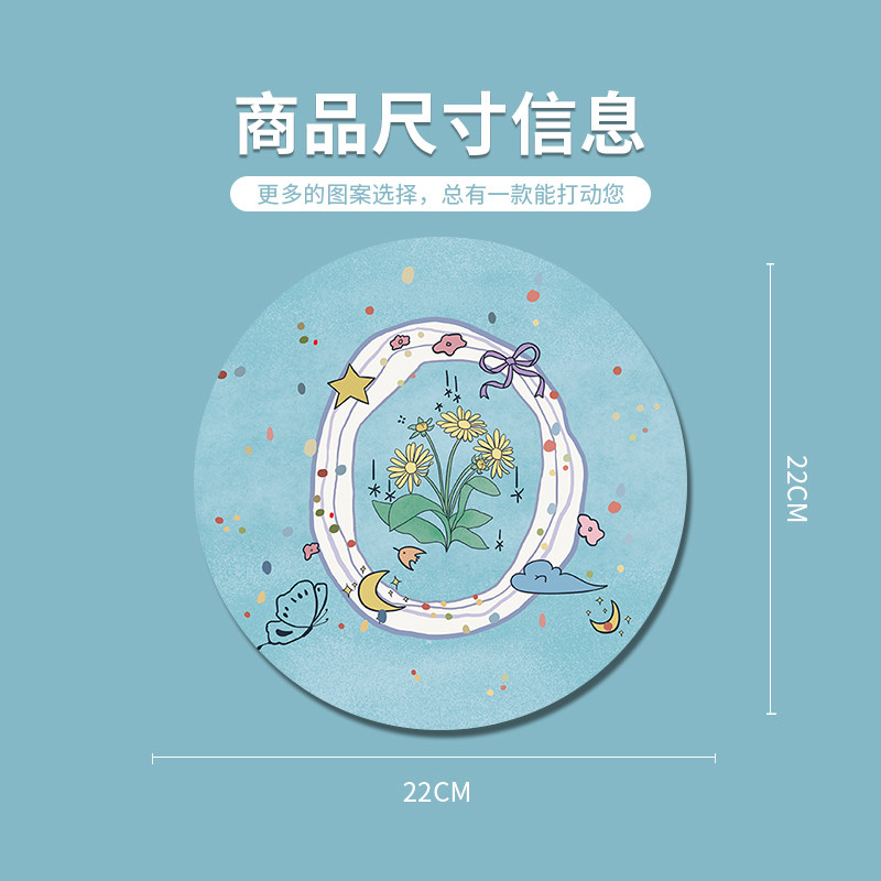 圆形鼠标垫男生小号便携电脑滑鼠垫办公简约卡通创意雏菊高颜值女