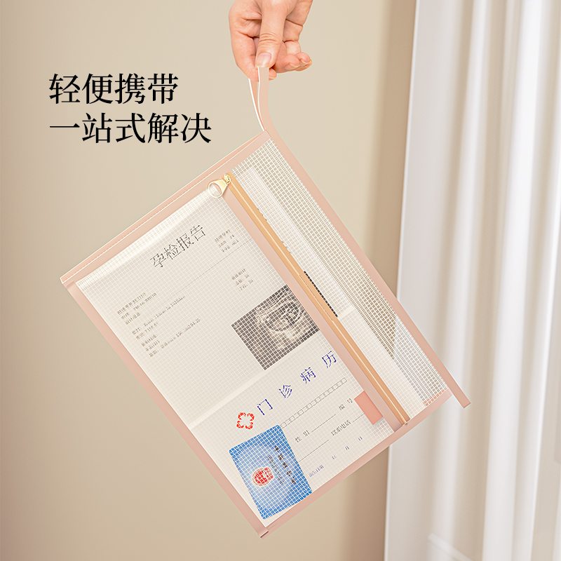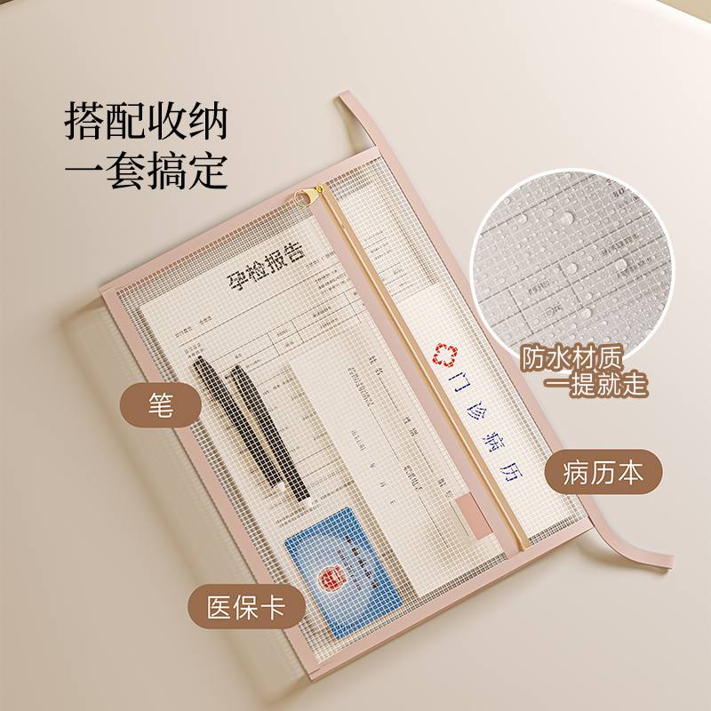 孕检资料袋孕期产检b超报告整理册透明便携防水体检报告收纳册证