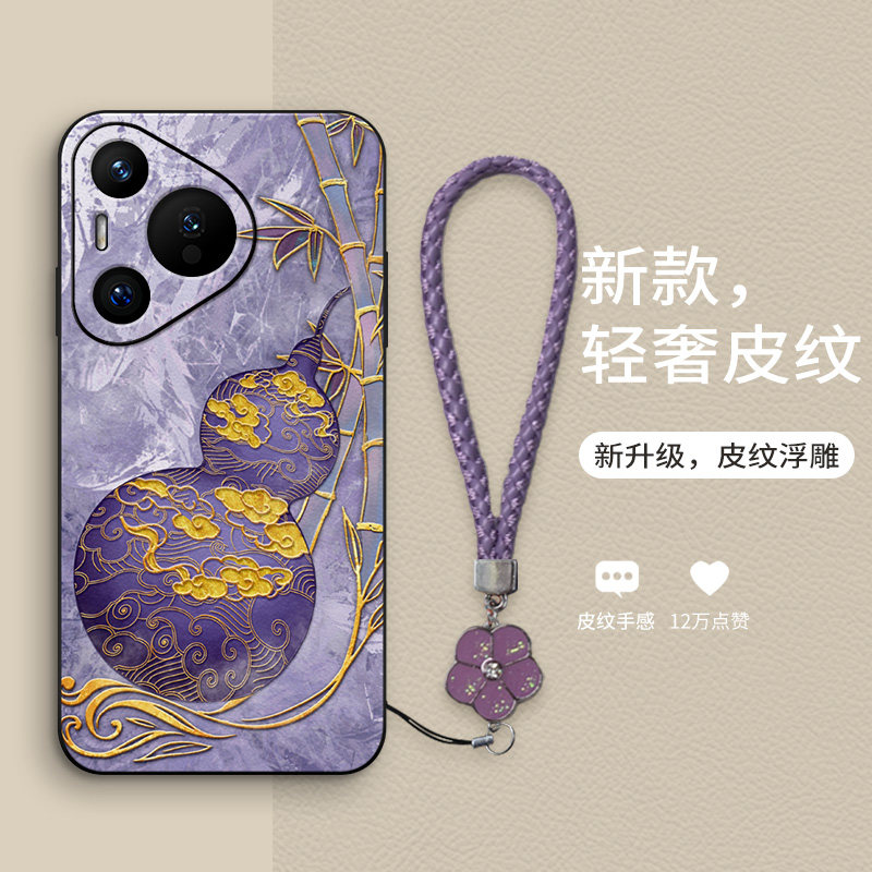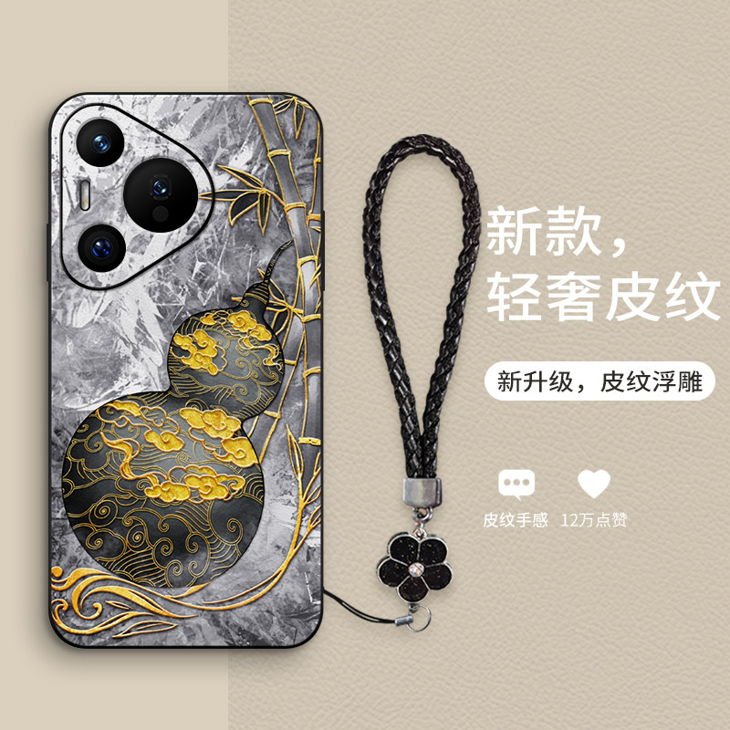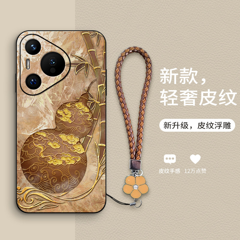 金丝葫芦适用华为pura70手机壳pura70pro新款p60新中式p60pro高级感p50女p50pro皮纹p40pro全包手绳保护套