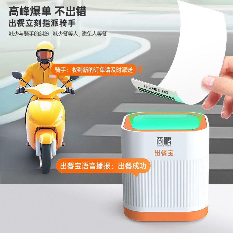 商鹏美团京东外卖饿了么出餐宝扫码自动上报出餐神器真人语音播报支持多店铺wifi4G外卖打印机出餐宝一体机
