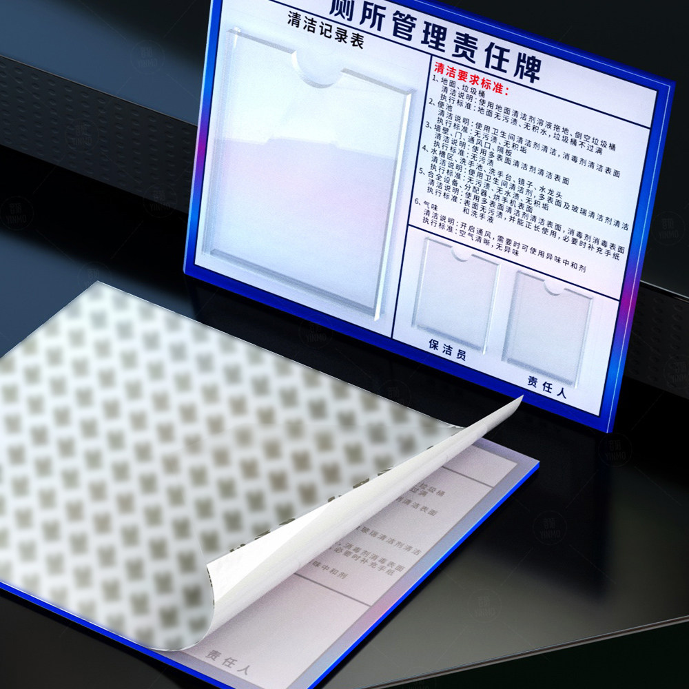 卫生间管理责任牌洗手间标识牌男女厕所清洁保洁记录表插卡式A4亚克力卡槽指示牌公示牌监督卡定制