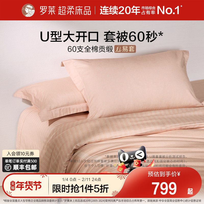 罗莱家纺U易套60支超柔全棉四件套纯棉被套床单床上用品1.8m套件