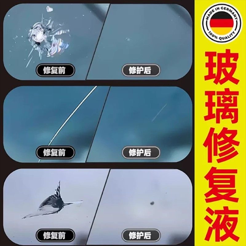 德国玻璃修复液汽车前挡风裂纹缝小坑划痕还原胶水镜子无痕粘合剂