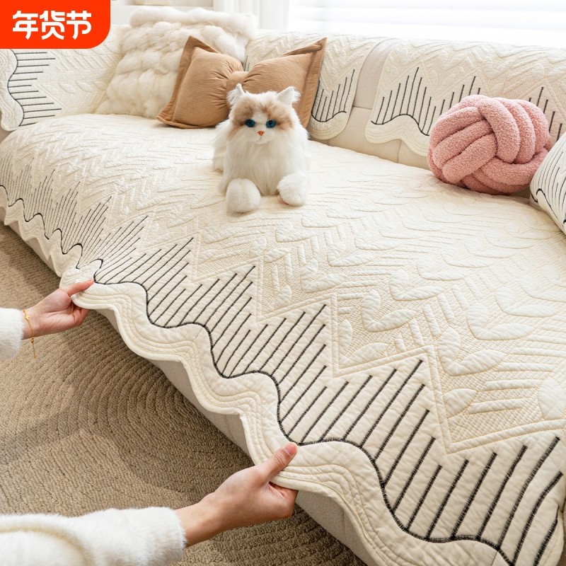 奶油风沙发垫四季通用2025新款全棉秋冬坐垫子盖布巾固定防滑套罩