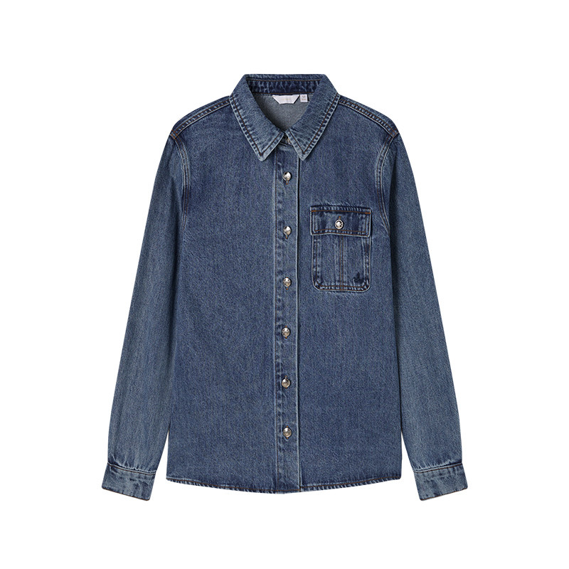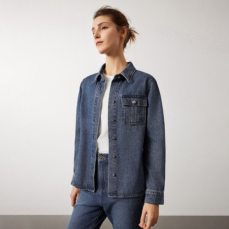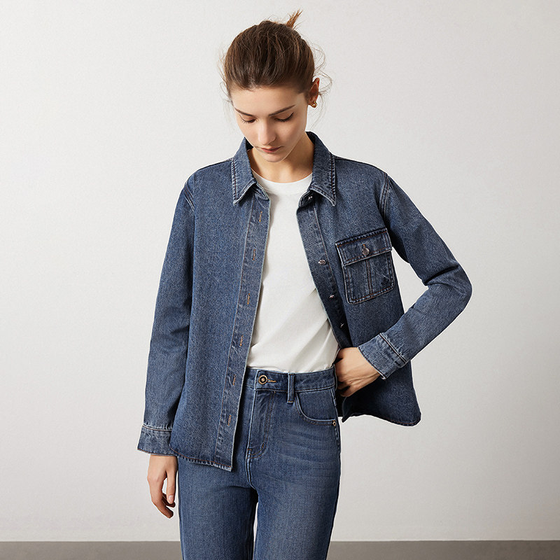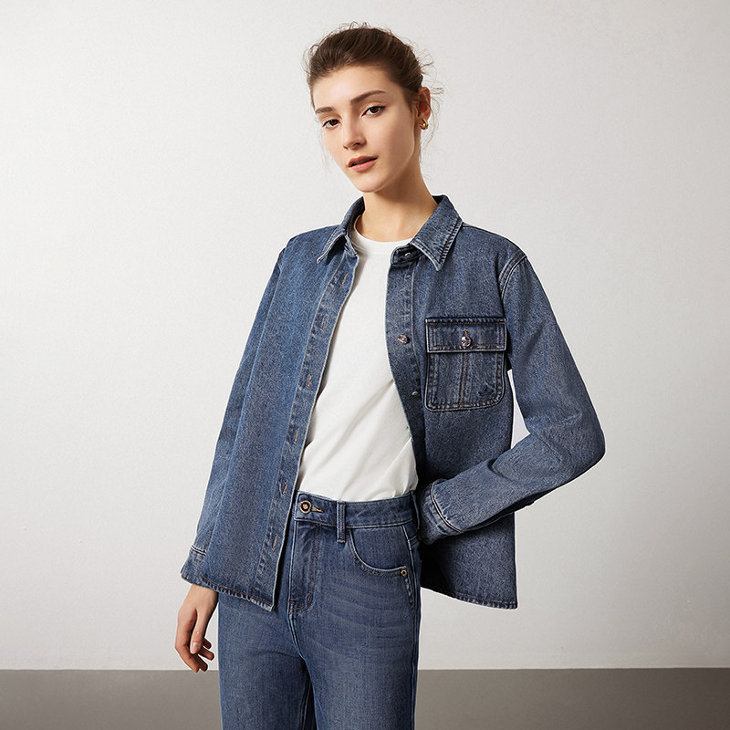 Navigare意大利小帆船蓝色短款工装衬衫外套女秋季休闲牛仔衣