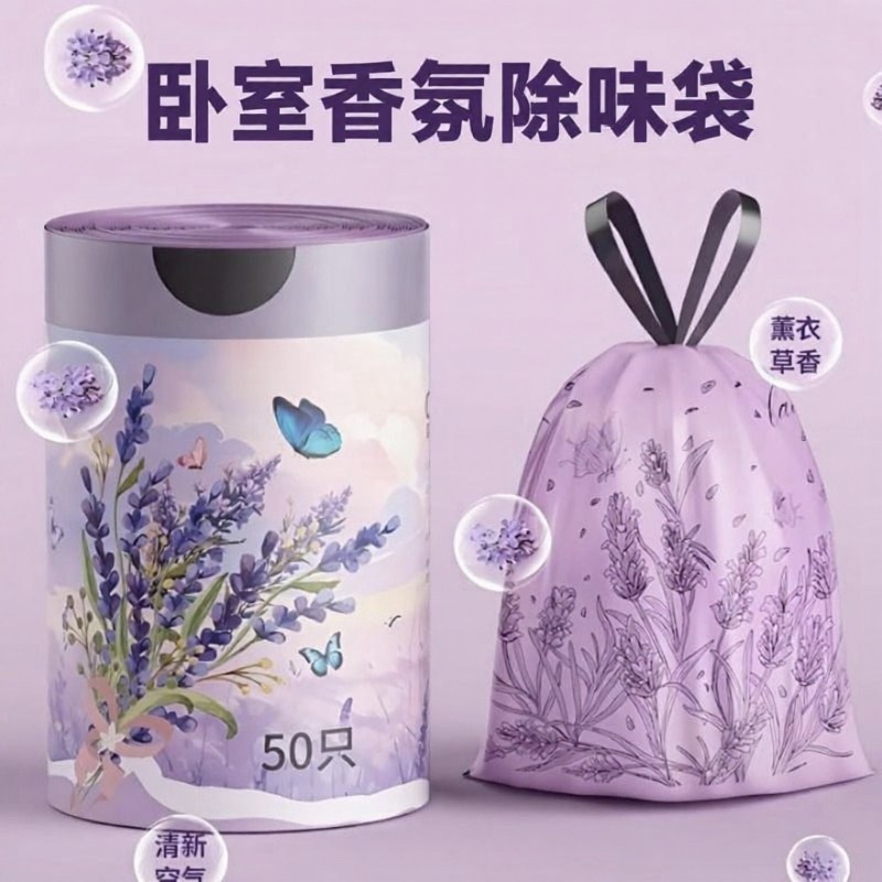 艾草垃圾袋薰衣草香氛驱蚊家用加厚手提式防蚊加大抽绳式厨房清香