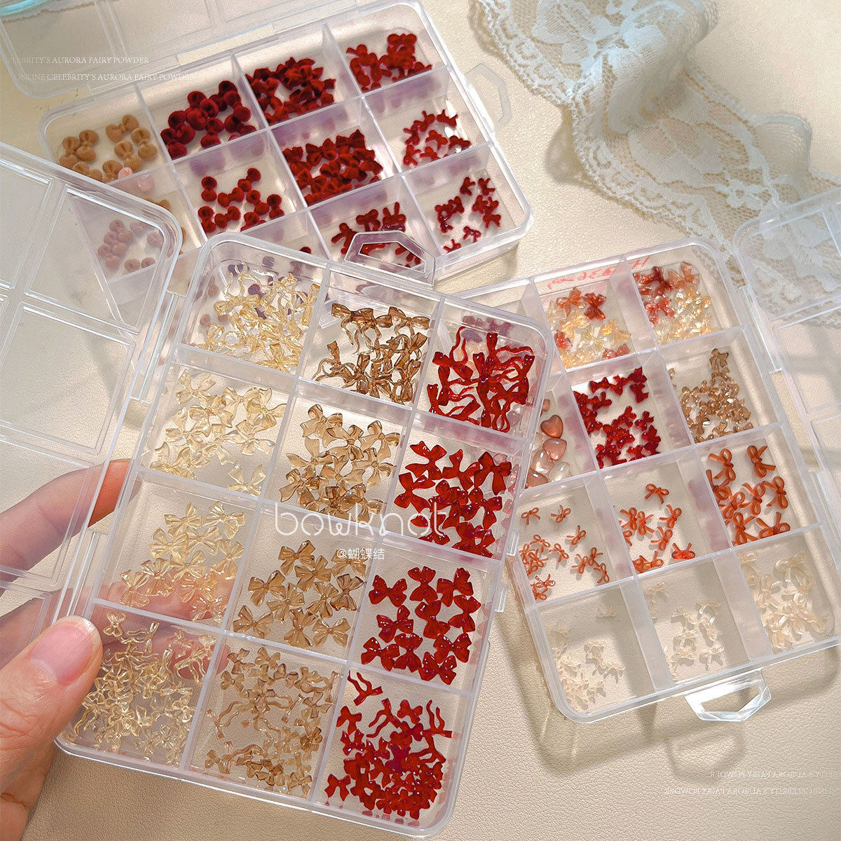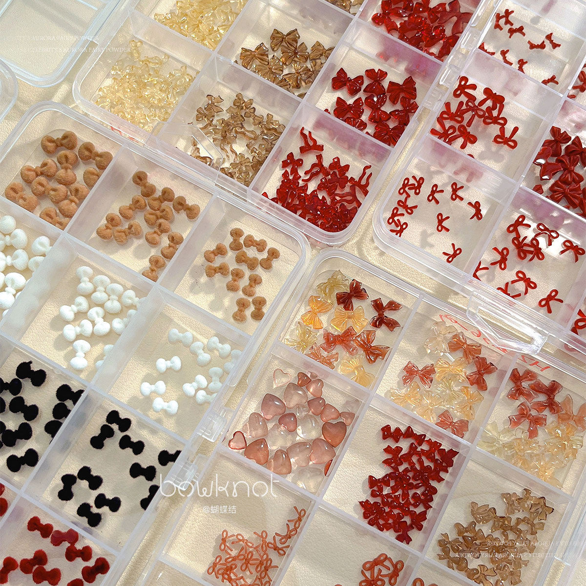 12格蝴蝶结美甲饰品秋冬美拉德混装飘带领结树脂穿戴甲小配饰