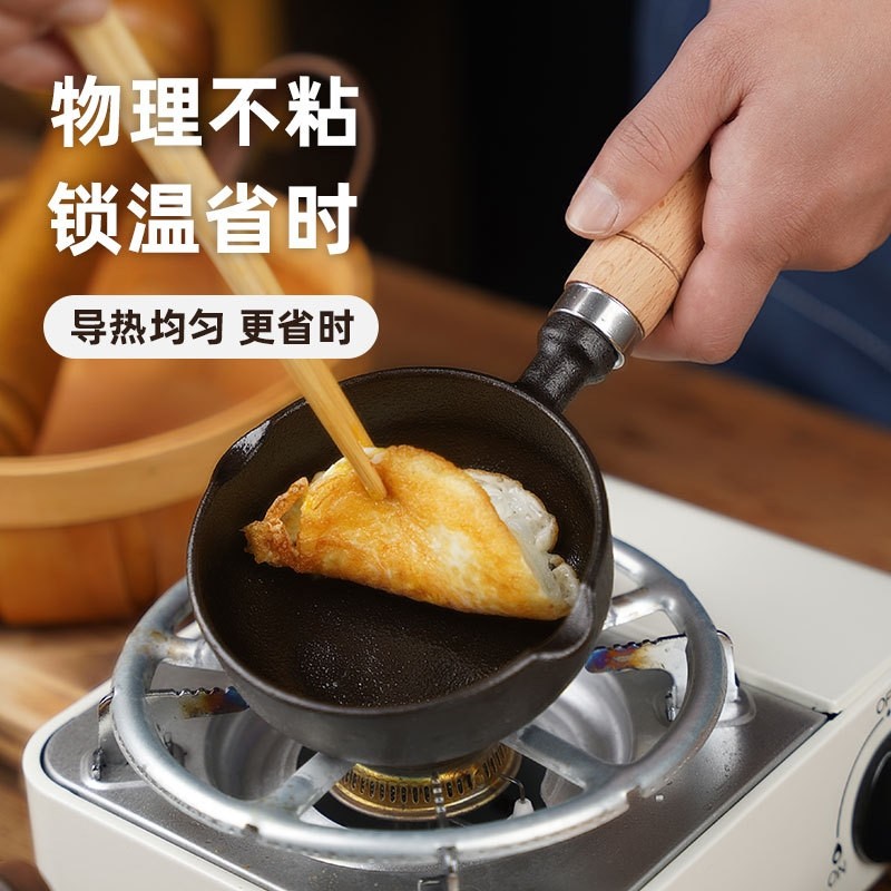 新款加深铸铁泼油锅迷你小锅淋油炝油热奶煎蛋锅不沾家用平底煎锅