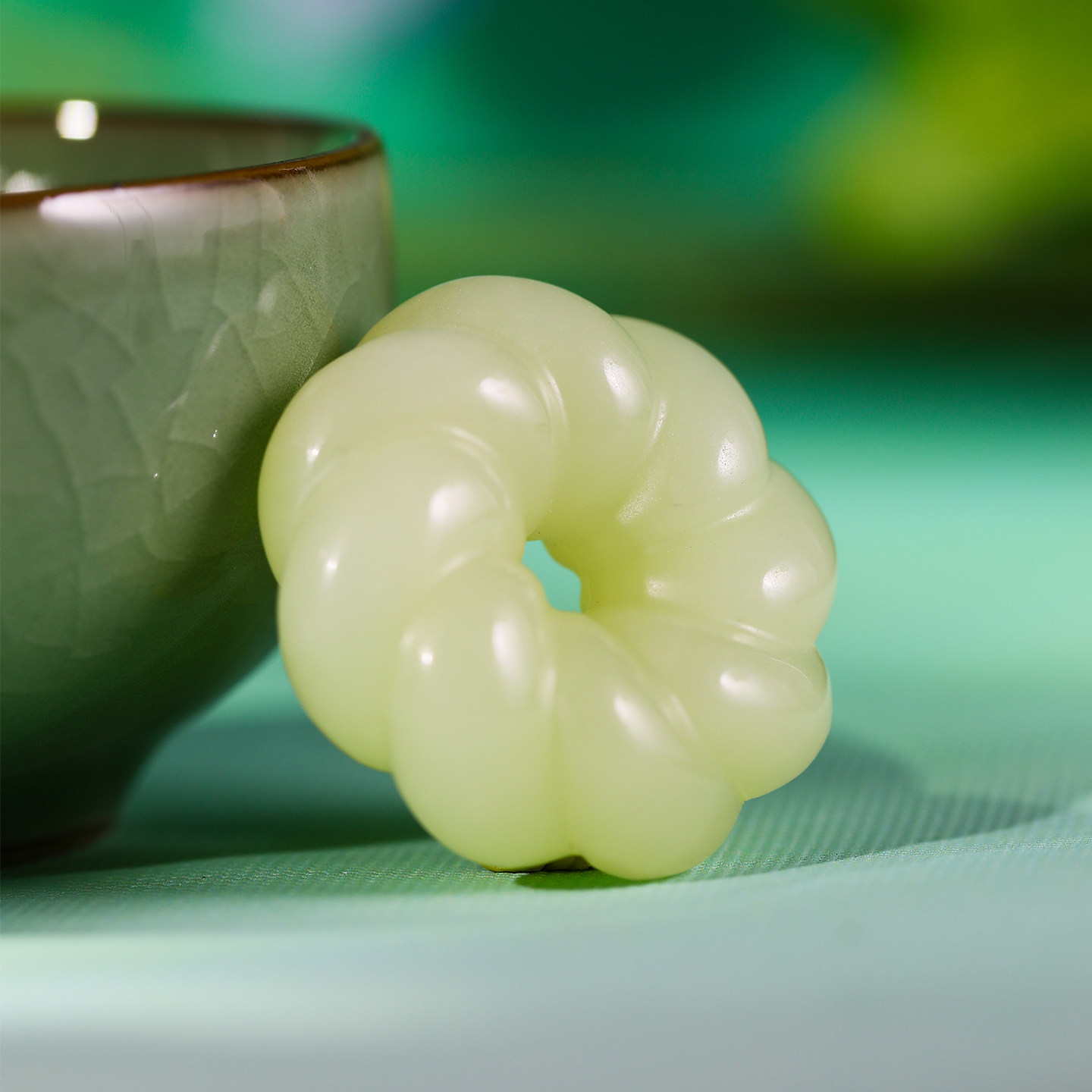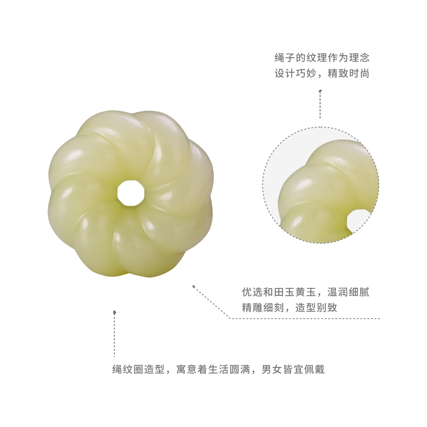 和合玉器和田玉黄玉绳纹圈平安圈扣吊坠子玉石挂件颈饰2.9cm男女