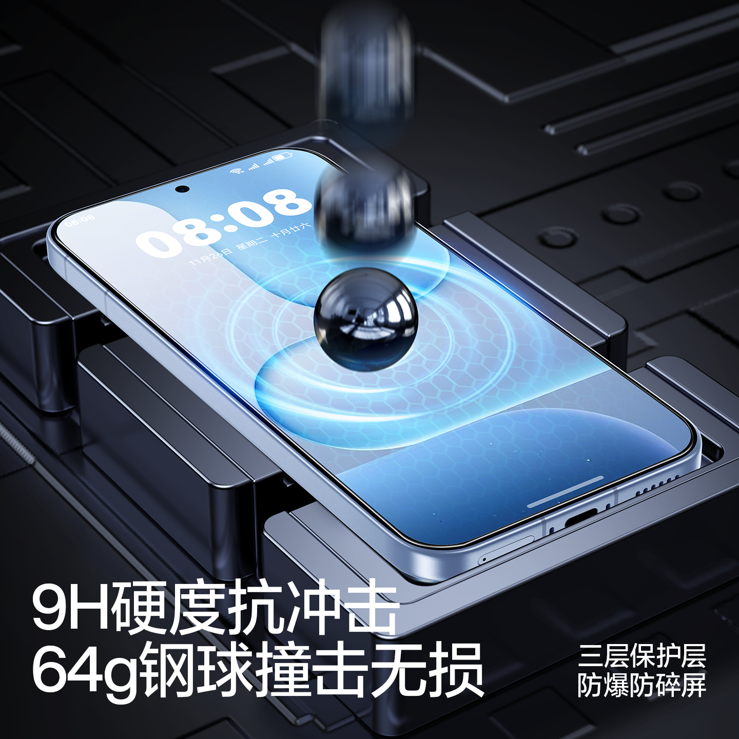 【李佳琦直播间】品胜升级二代除尘舱钢化膜适用苹果17Pro新款iPhone17ProMax手机贴膜16保护膜15Pro防摔高清