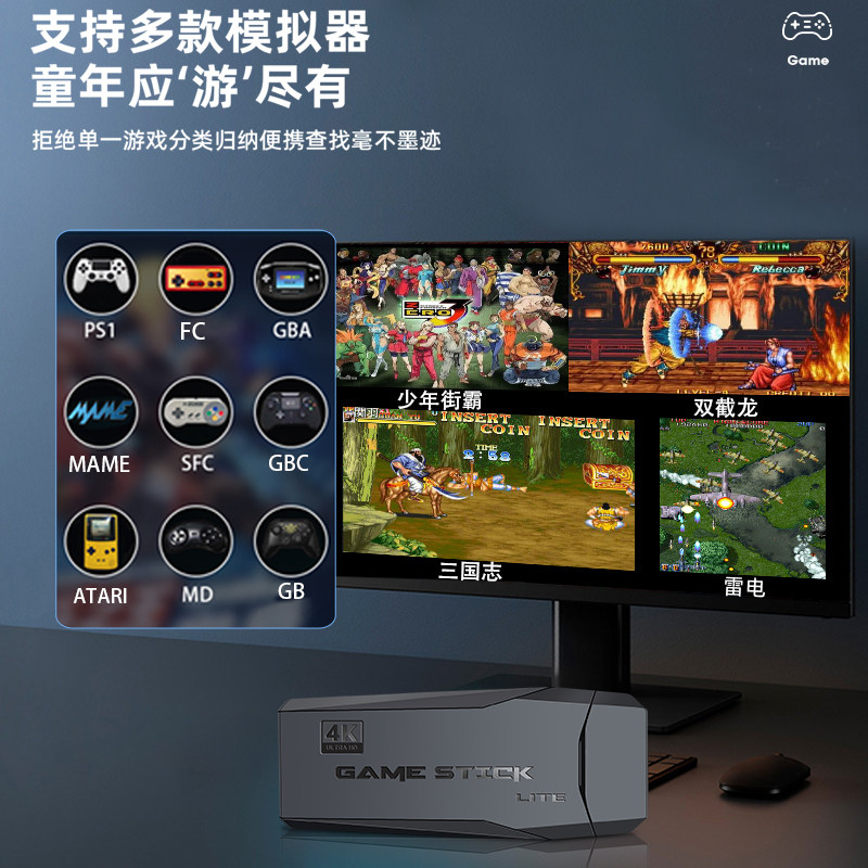 高清游戏机2024新款连电视连接手柄游戏盒子家用街机儿童双人摇杆怀旧fc超级玛丽红白机魂斗罗插卡psp潘多拉3
