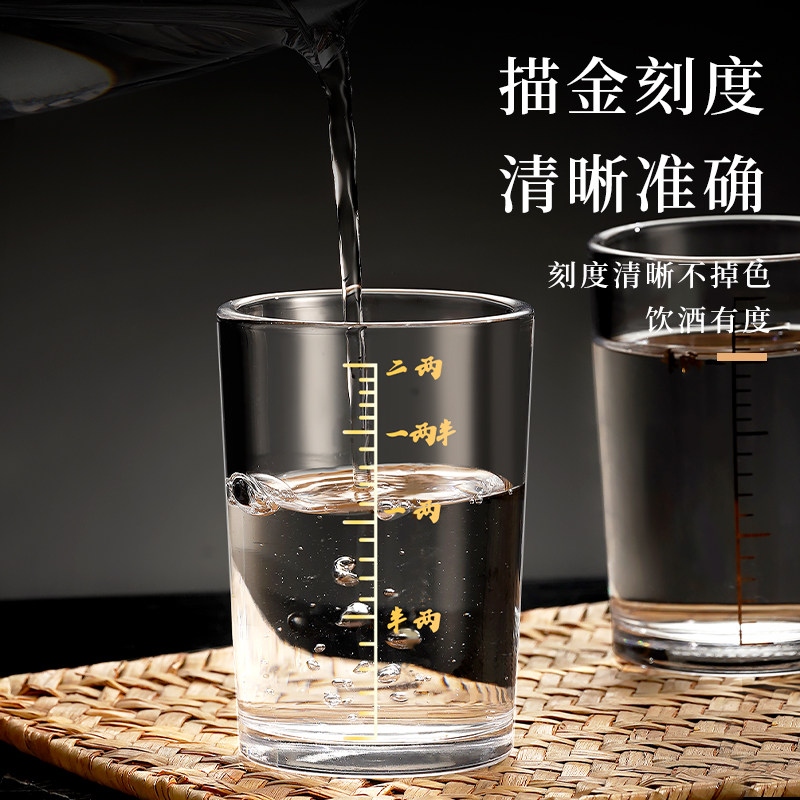 刻度一两二两白酒杯家用小号1两2两杯烈酒杯啤酒玻璃杯酒具100ml