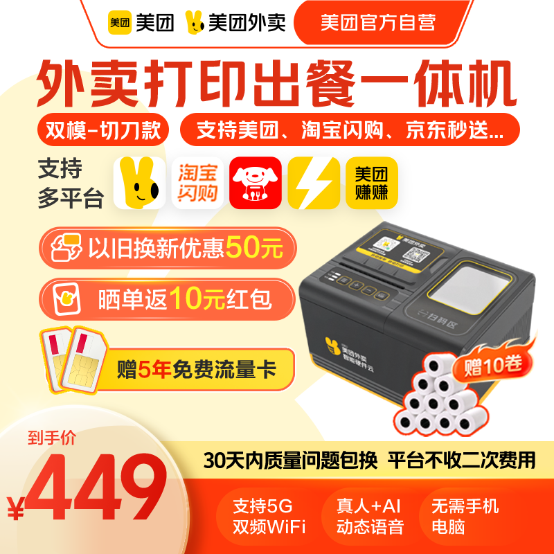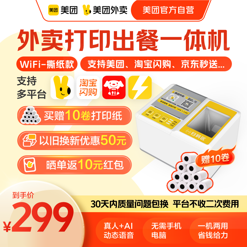 【美团官方自营】美团外卖打印机出餐宝一体美团打印机wifi自动接单京东外卖小票机打印机接单宝票据出餐宝