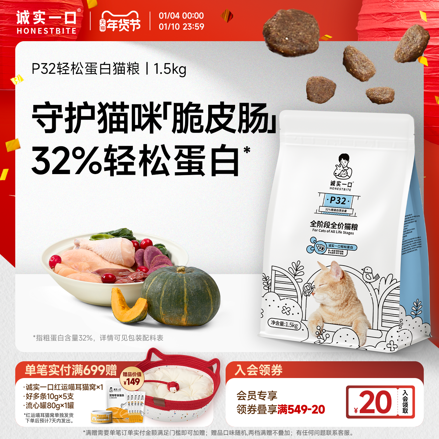 诚实一口P32无谷全价低敏幼成猫鸡肉猫粮官方旗舰店正品1.5kg