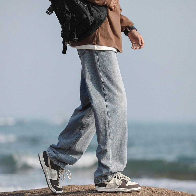 森柔牛仔森马牛仔裤男裤子新款中蓝潮宽松直筒裤子男复古百搭猫须
