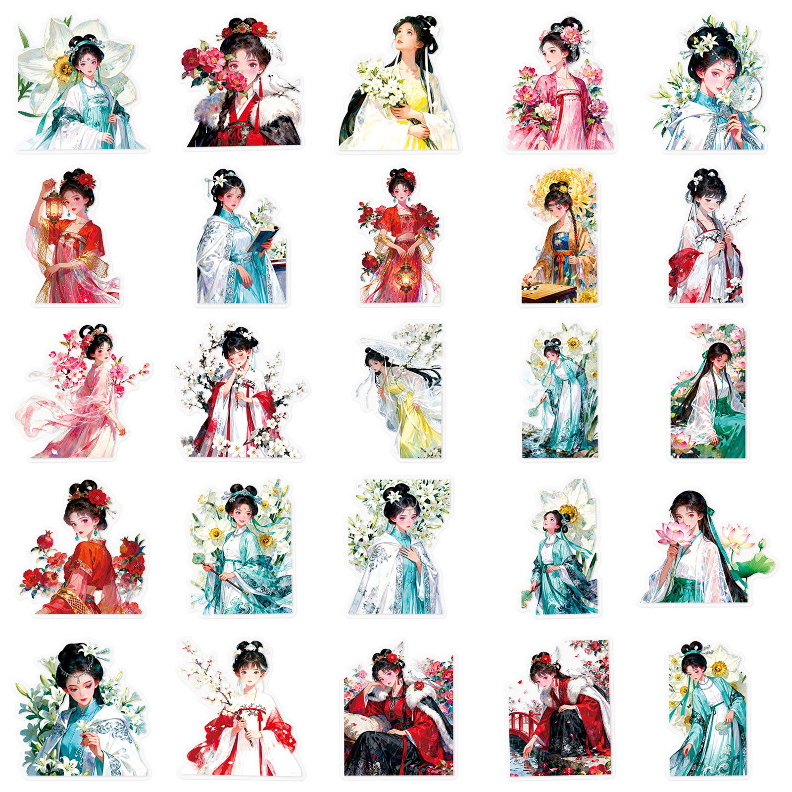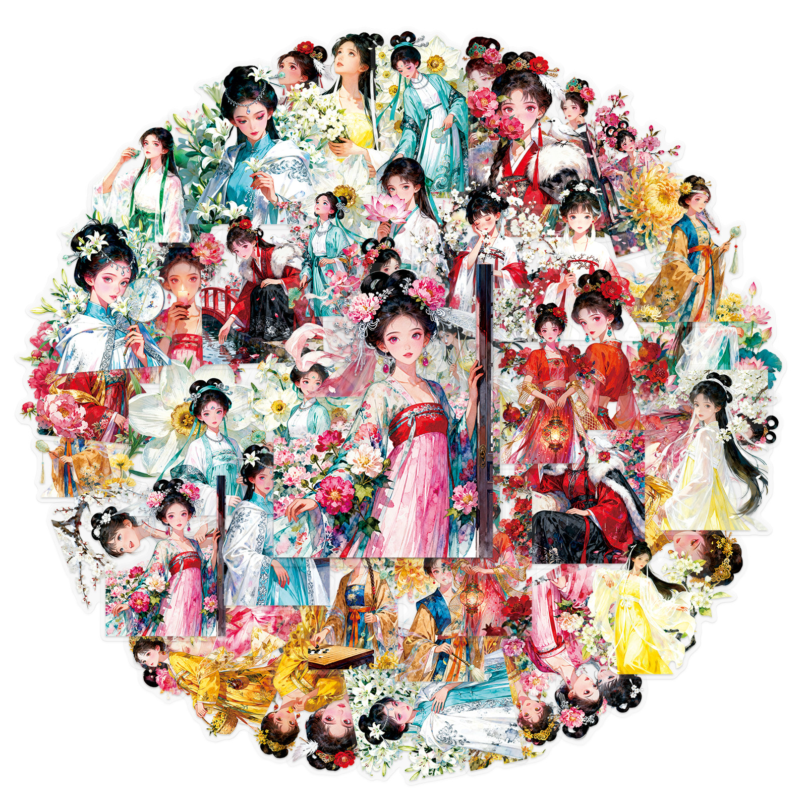 100张十二花神透明手帐贴纸简约咕卡手账本素材高颜值可爱卡通防水装饰女生宿舍衣柜iPad电脑文具行李箱贴纸