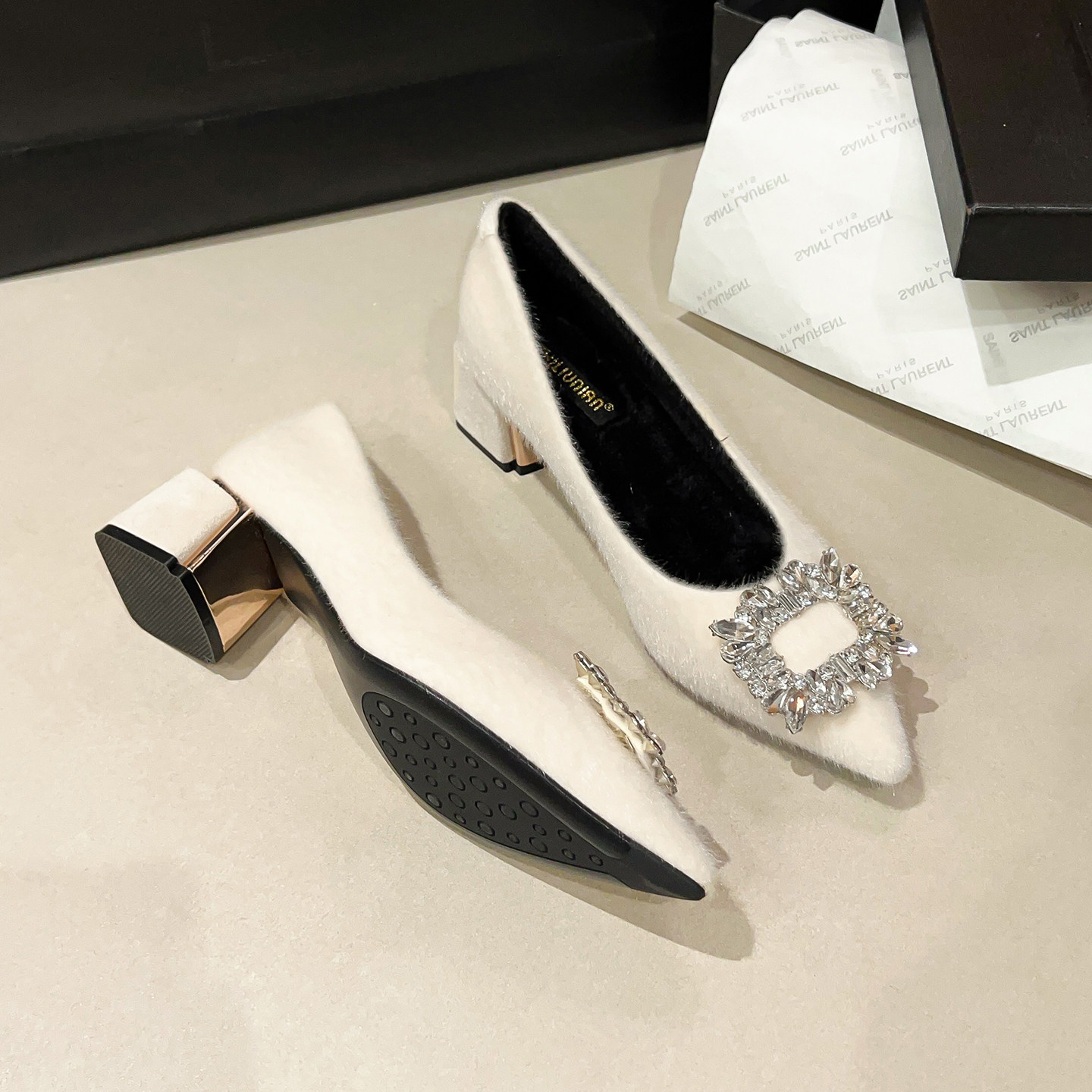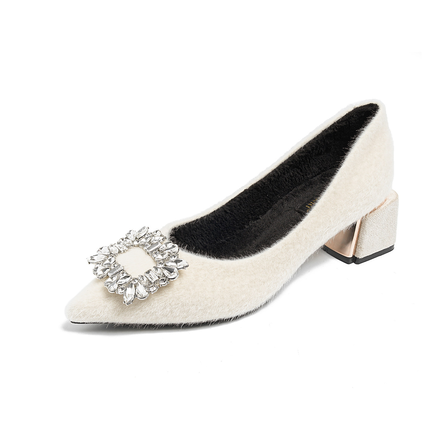 高跟鞋毛毛鞋女2025新款冬季加绒棉鞋外穿一脚蹬粗跟单鞋大码女鞋