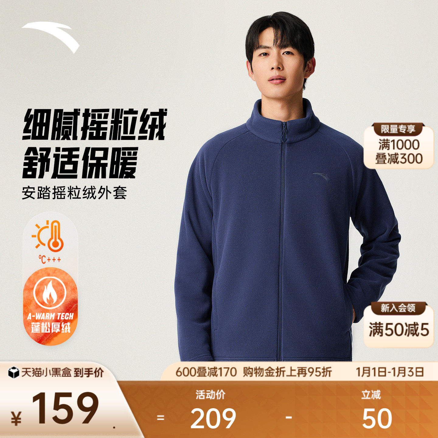 安踏摇粒立领或户外抓绒衣男女2025冬季保暖运动外套冲锋衣内胆