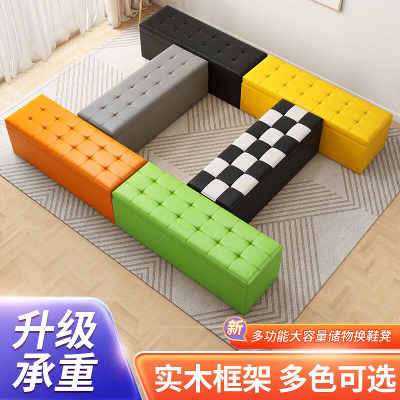 服装店沙发凳长凳储物试衣间凳子休息凳鞋店换鞋凳长条脚凳皮墩子