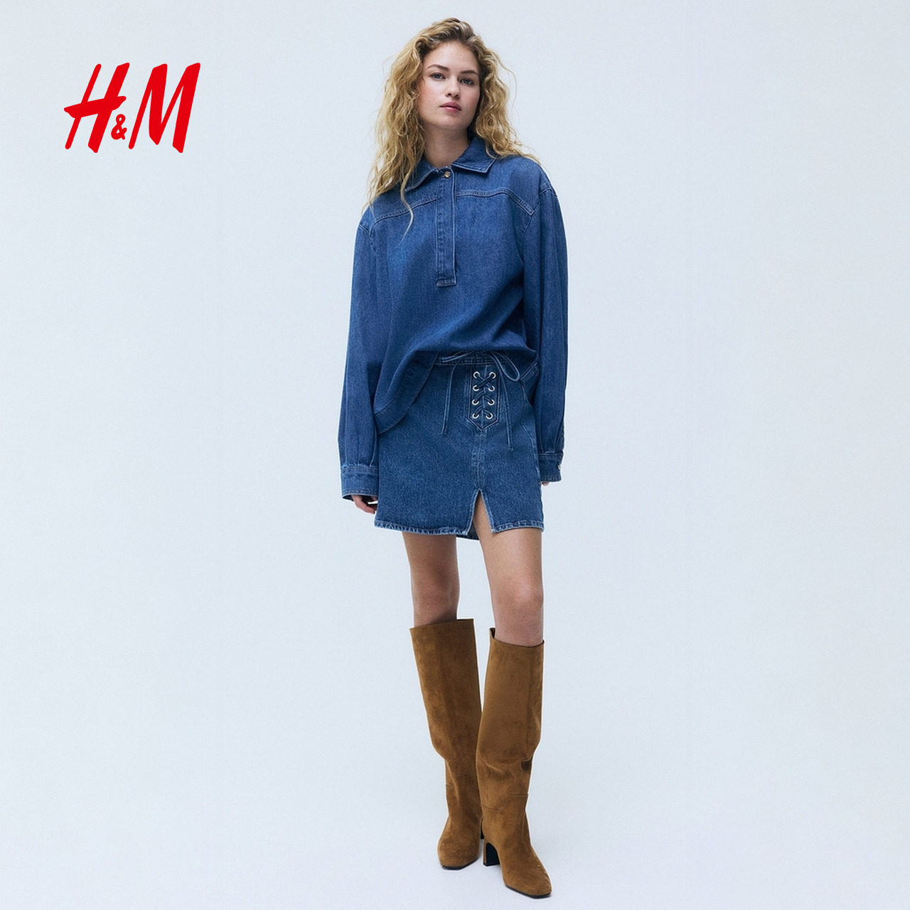 HM女装衬衫2026春季新款套头式时尚潮流经典洗水牛仔衬衫1313428