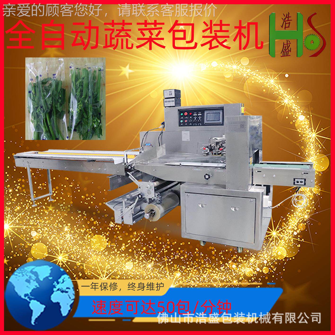 蔬菜鲜服包装机 有保机蔬菜全自动包机打 858伺枕式包装机械设备