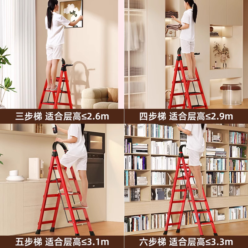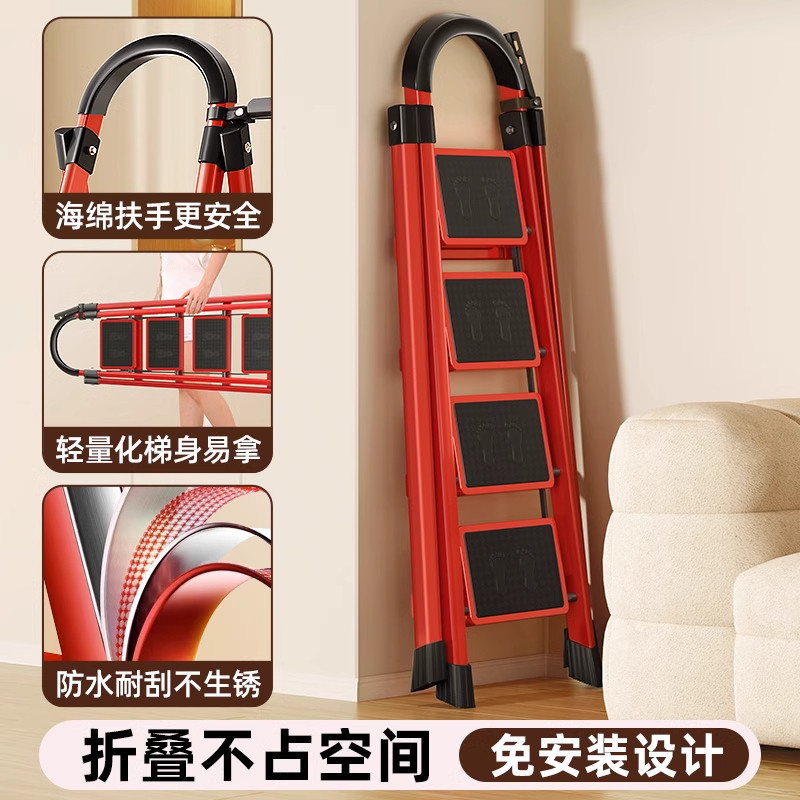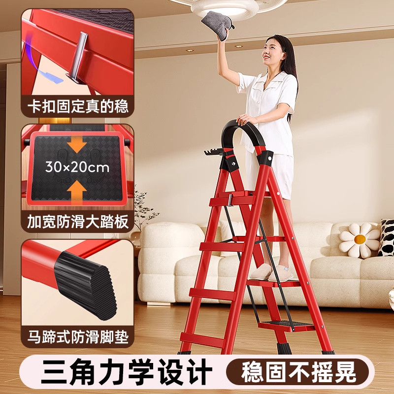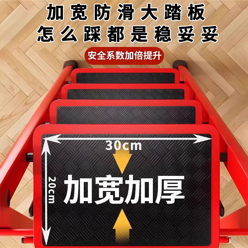 梯子家用伸缩人字梯加厚折叠红色乔迁专用楼梯爬梯多功能室内踏步