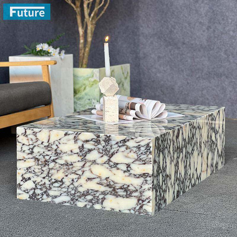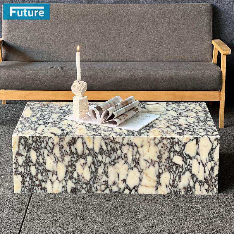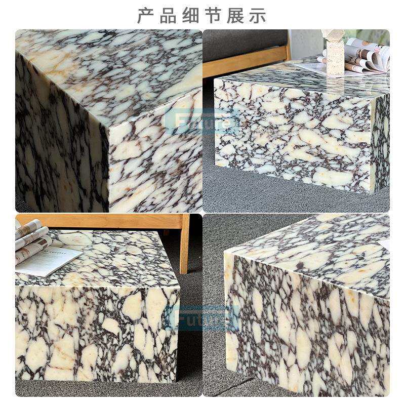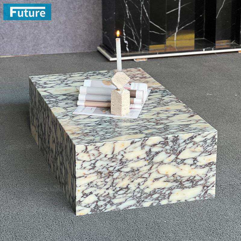 简约轻奢天然紫色大理石咖啡桌客厅长方形茶几家用装饰卡紫桌子