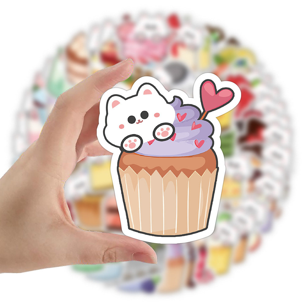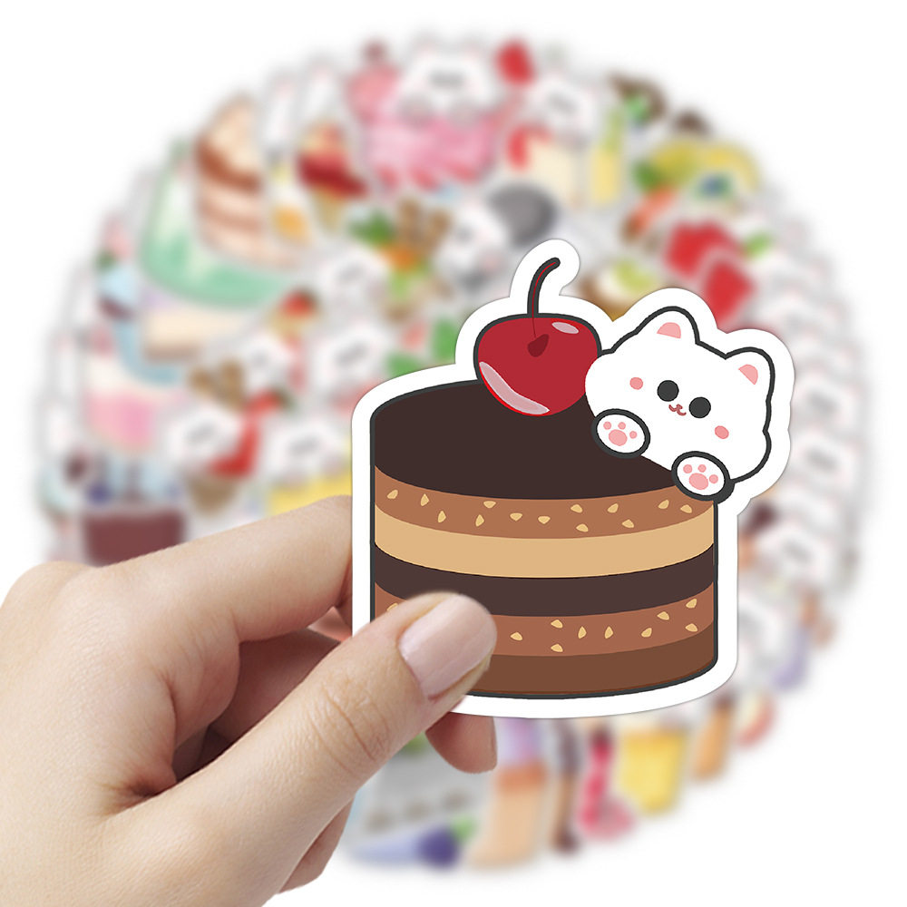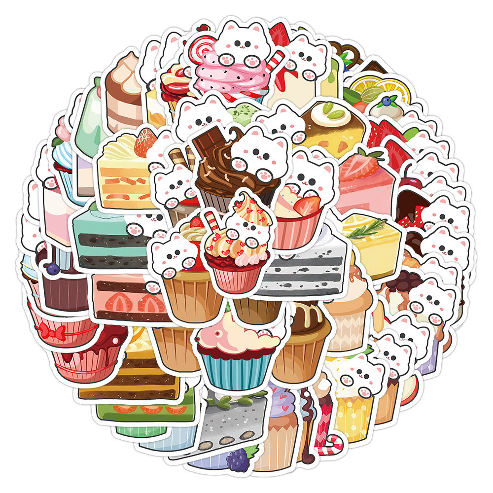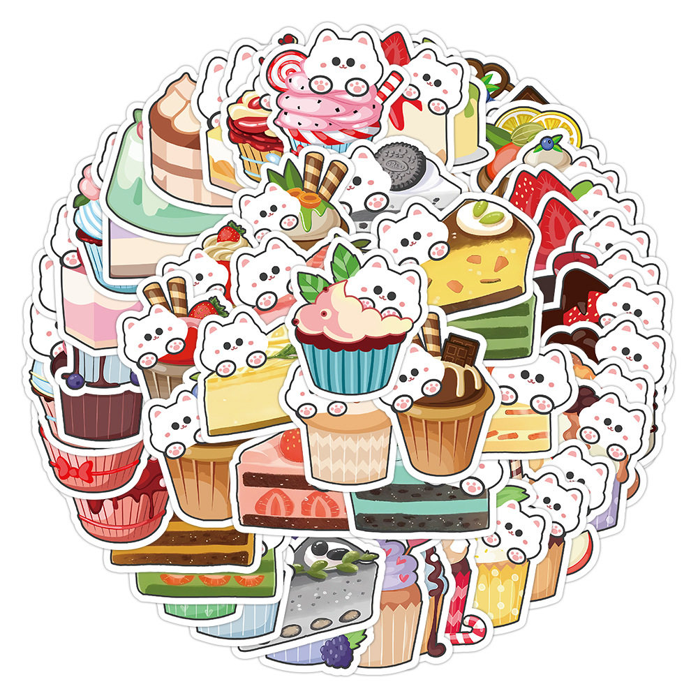 60张原创蛋糕可爱小猫贴纸手账手机壳滑板车行李箱贴画厂家