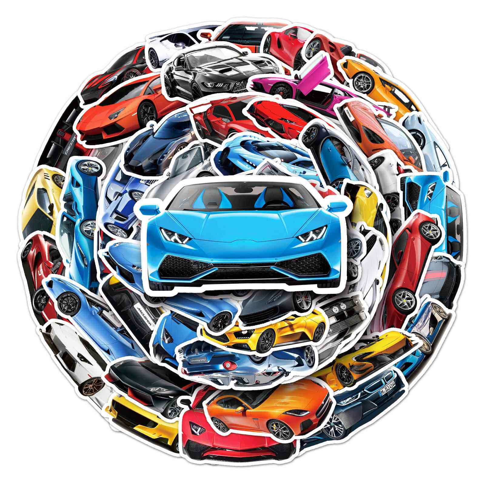 新款直销51张卡通个性跑车时尚DIY贴纸滑板车笔记本电脑汽车冰箱
