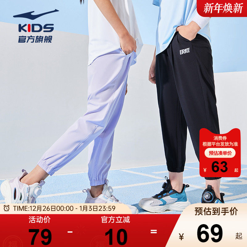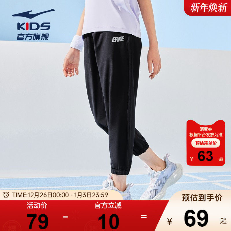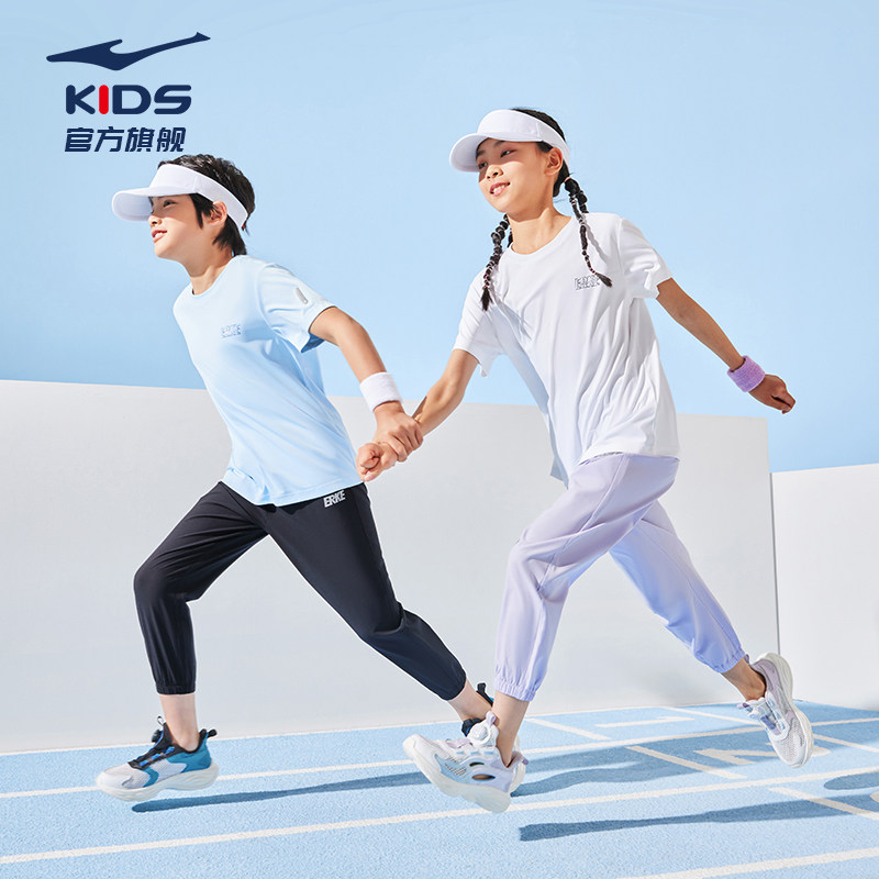 鸿星尔克童装梭织裤夏季裤子男童运动裤弹力透气长裤男女童运动裤
