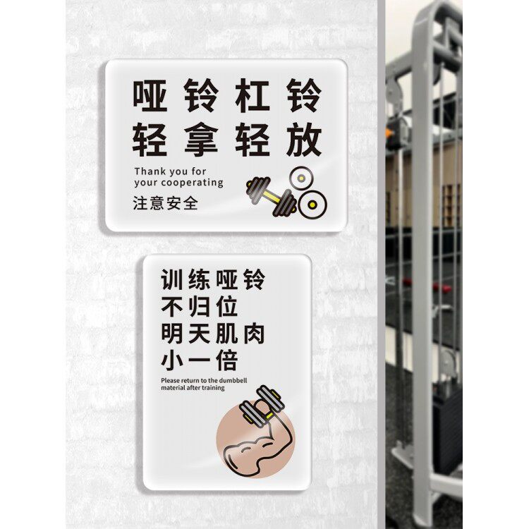 健身房标识牌器械使用后请放回原位健身房标语牌健身房安全提示牌亚克力文明标语注意事项标牌墙贴文字定做