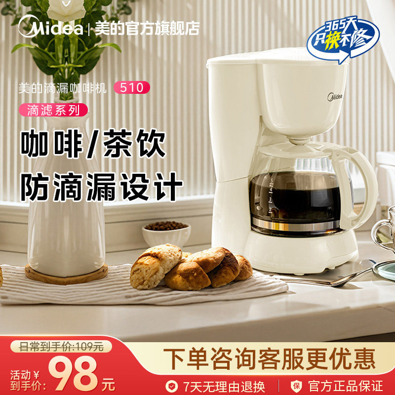 美的咖啡机家用小型滴漏迷你便携办公室泡茶器煮咖啡一体机送礼物