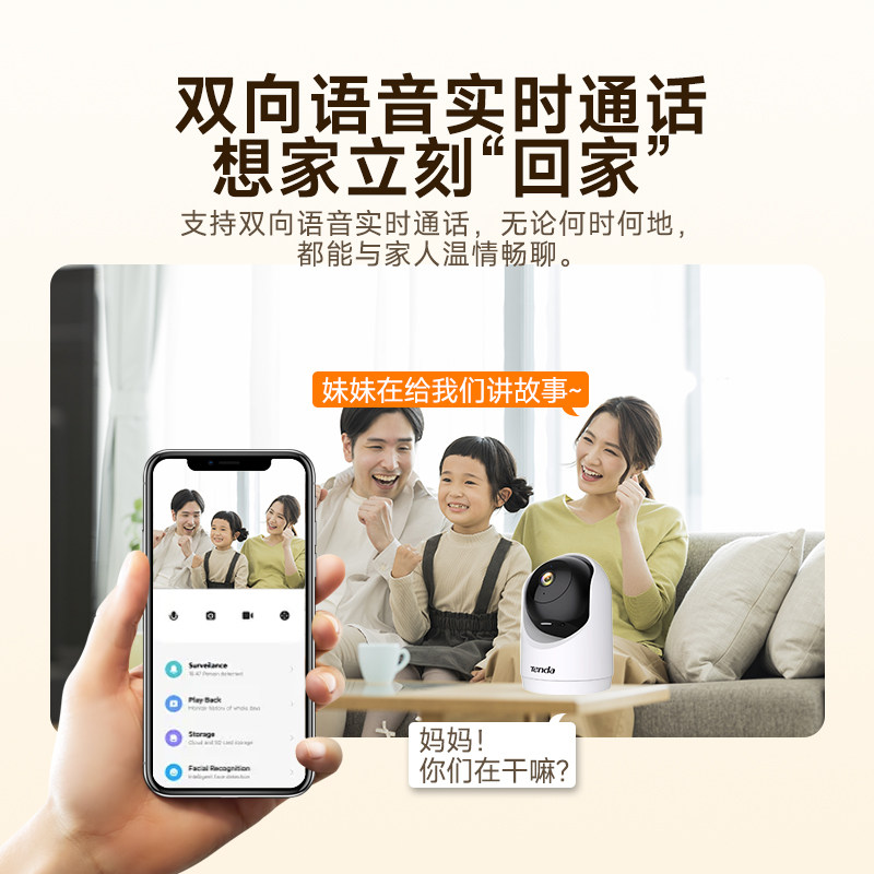 腾达摄像头手机远程监控器家用室内360度带语音无线高清夜视摄影