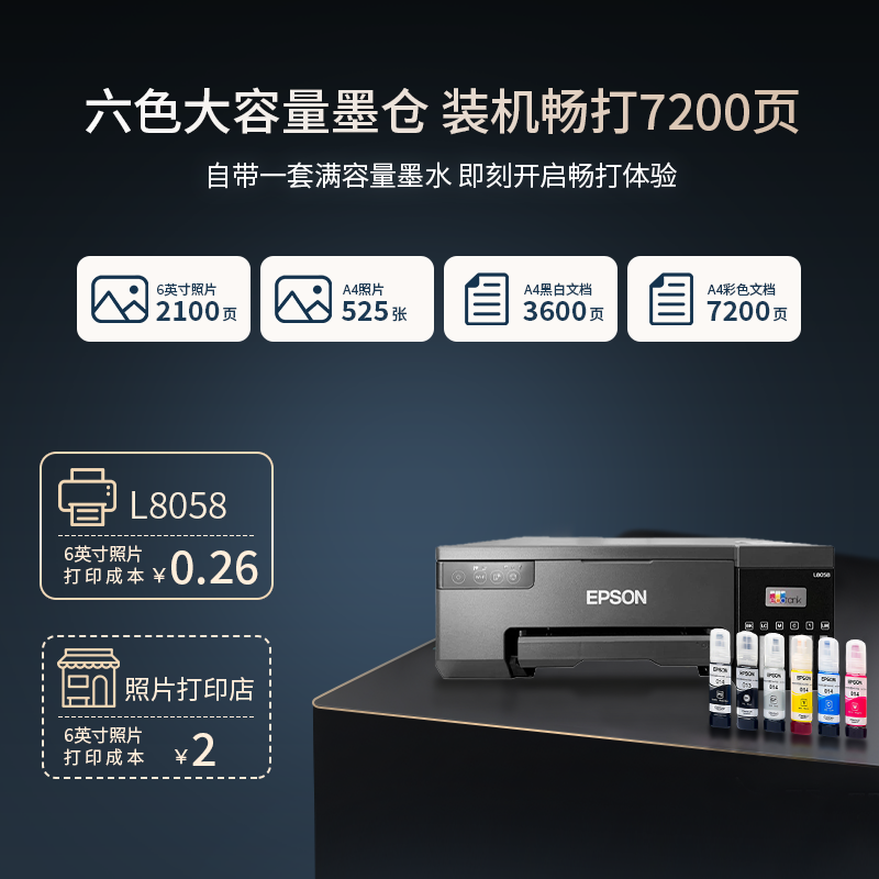 爱普生L8058六色A4喷墨打印机墨仓式单打印商用办公无线远程18058