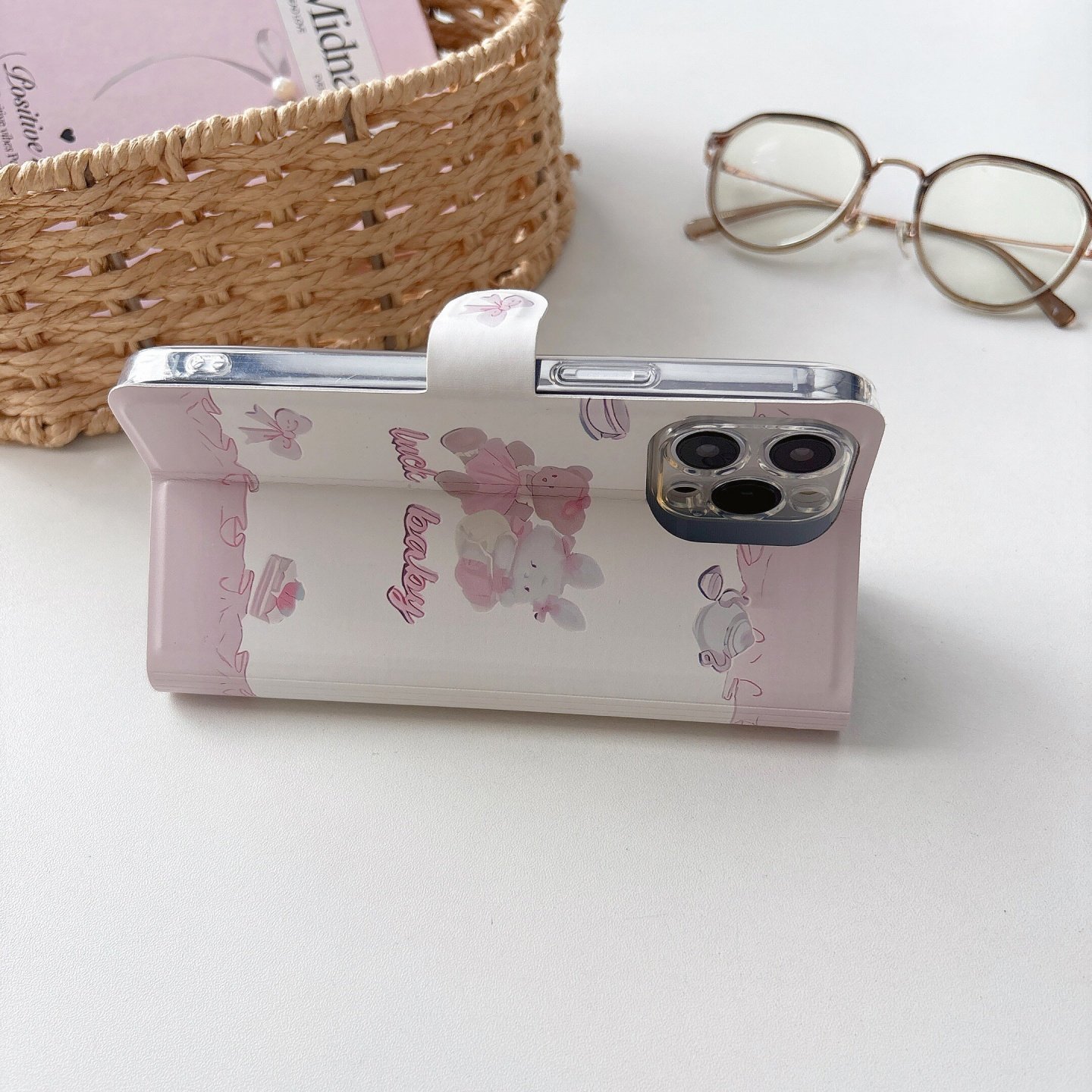 小熊兔兔翻盖皮套适用小米17promax手机壳K90/15新款K80插卡note14卡通K70创意折叠支架红米Turbo4全包13防摔