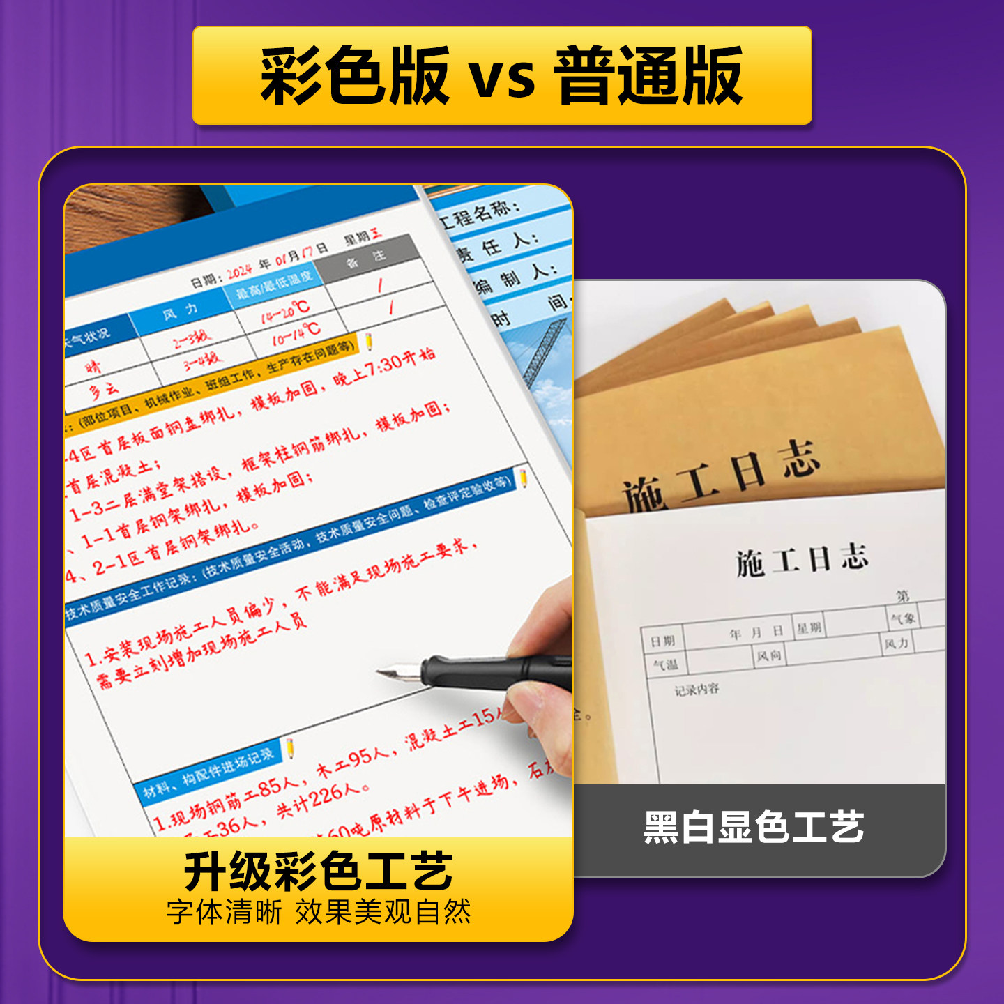 【项目部施工日志】建设工地质量巡查监督记录本工程安全检查监理日志本单位装修进度管理日记本双面加厚手册