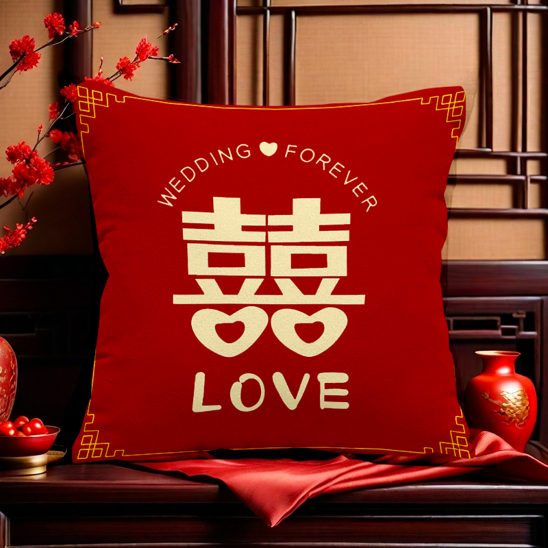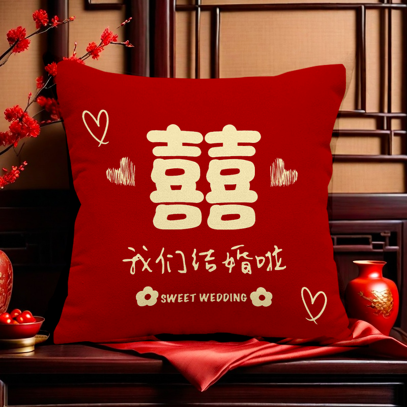 新款婚庆喜字抱枕红色客厅结婚沙发靠垫婚礼婚房装饰喜庆新婚礼物