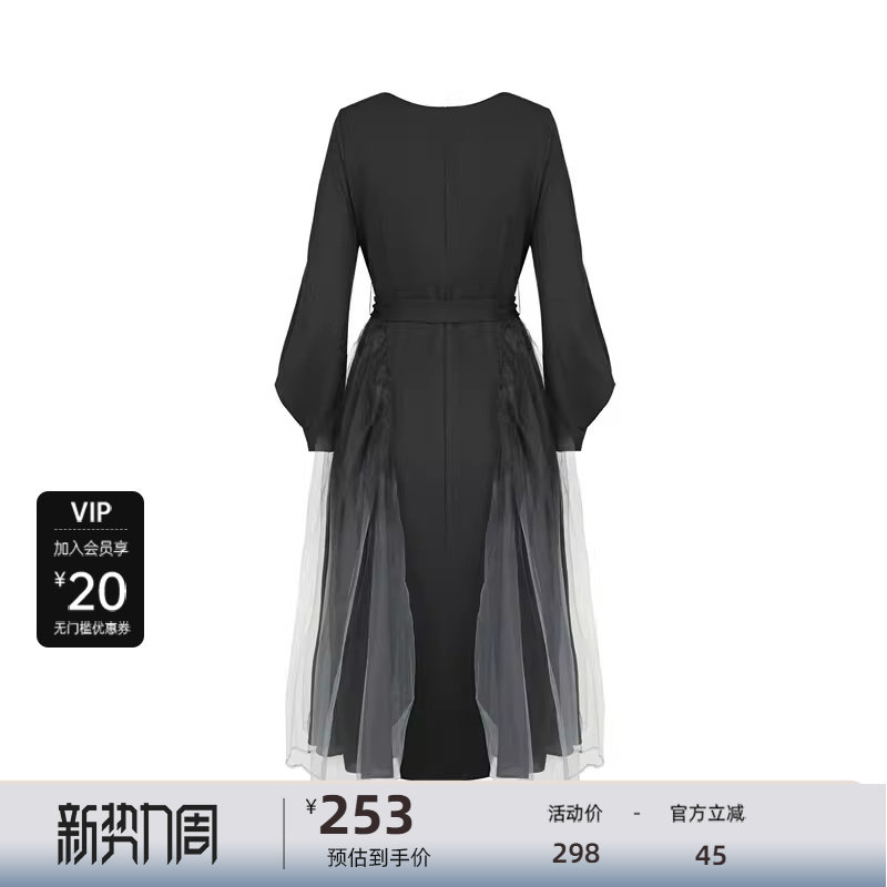 S·DEER圣迪奥女装秋圆领收腰晕染网纱泡泡袖连衣裙S233Z12D7