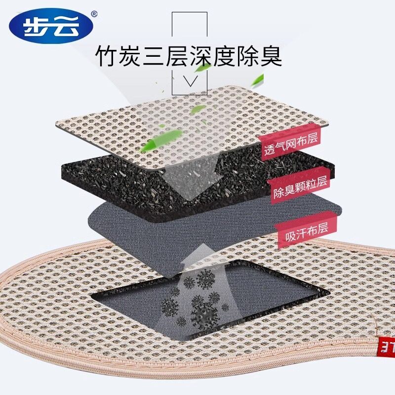 竹炭除臭鞋垫男款防臭透气网眼吸汗留香女士软底舒适防滑汗脚专用