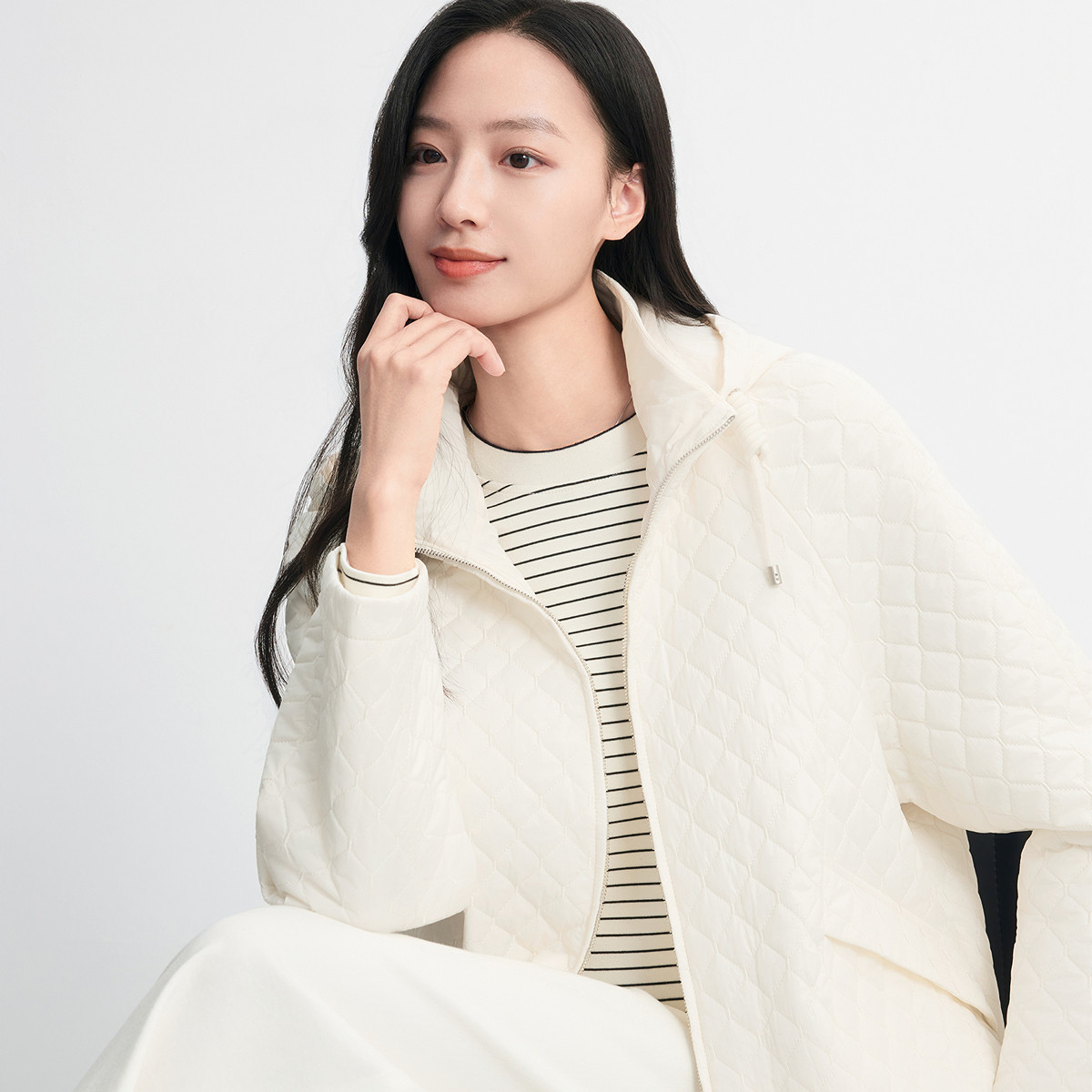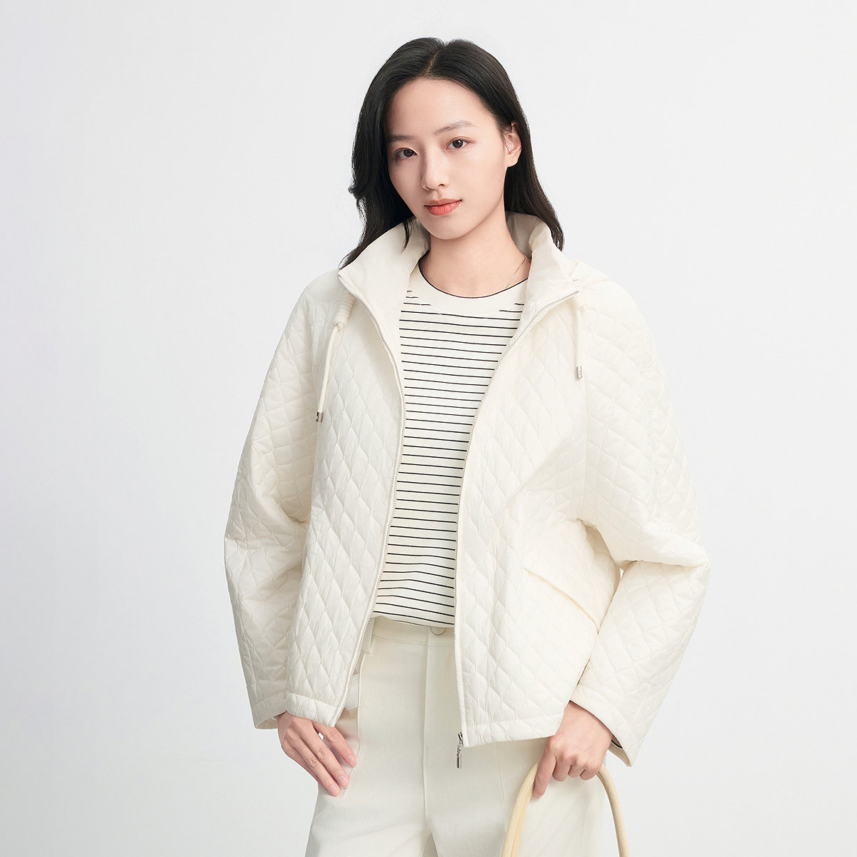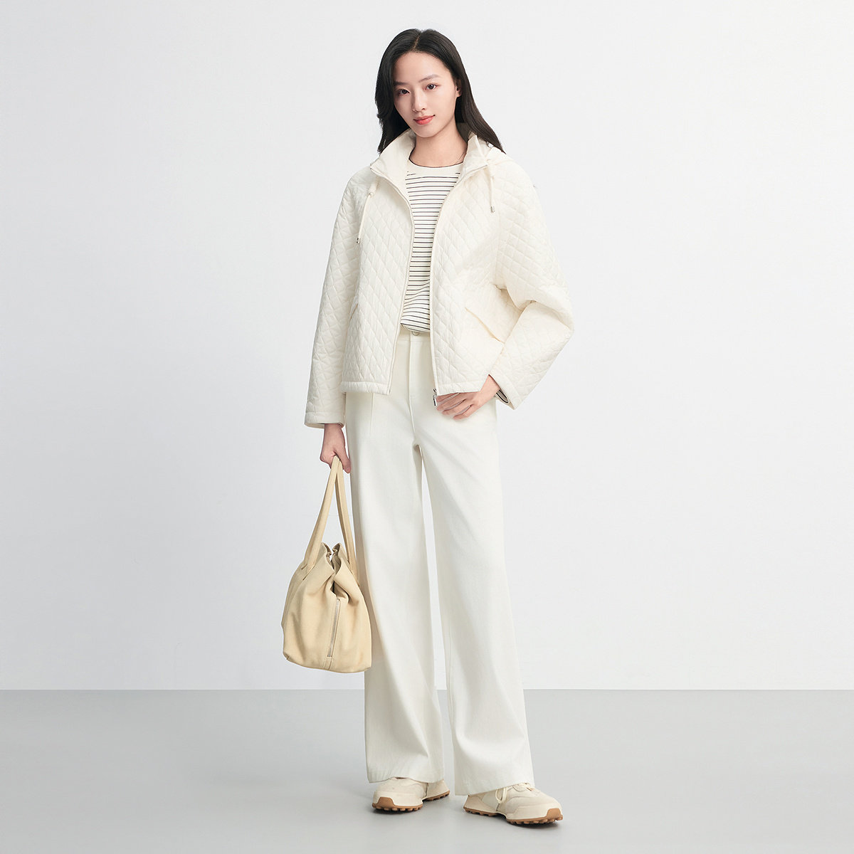 FINITY菲妮迪棉服棉袄2026春新款简约米杏色格纹气质翻领外套女装