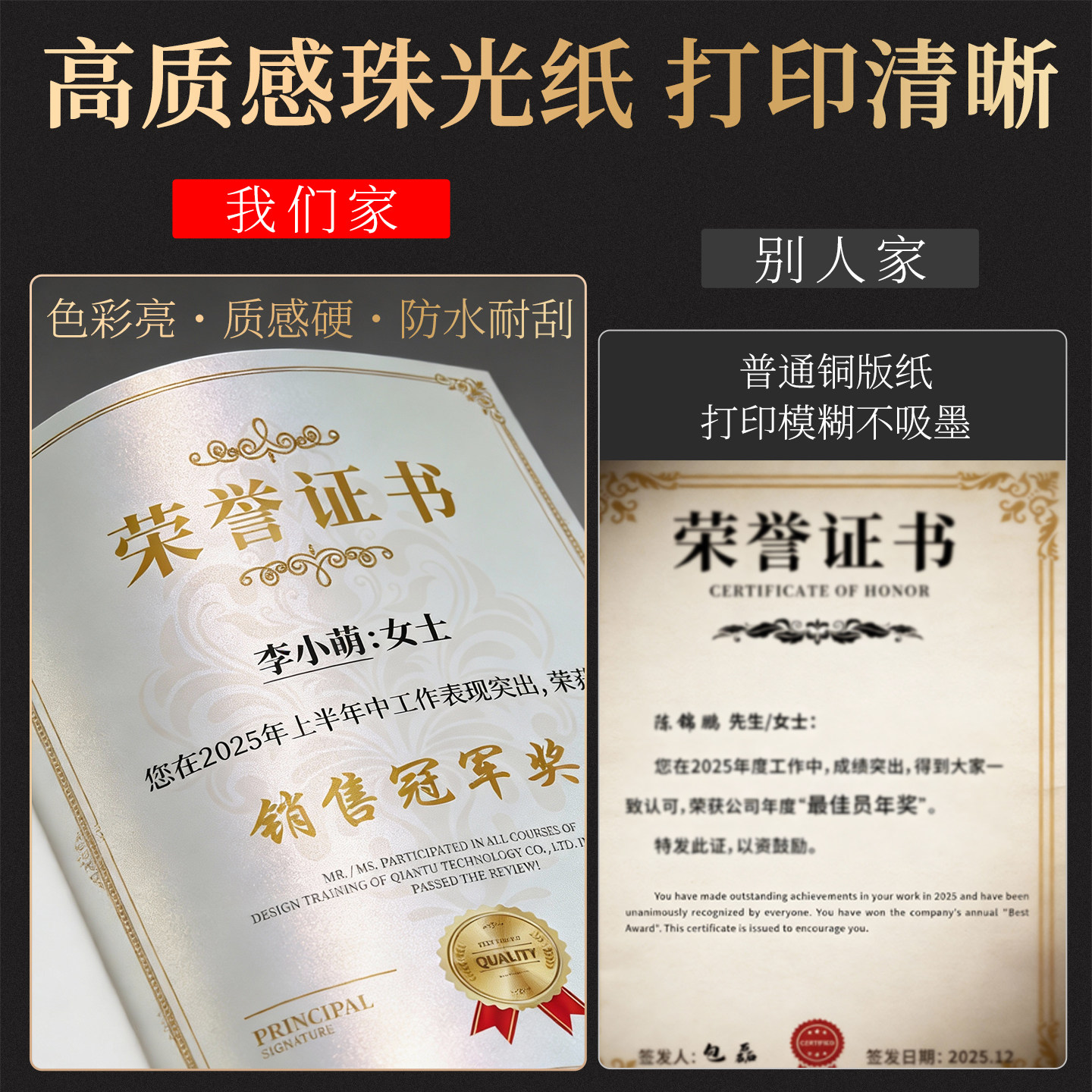 高清水晶奖状证书荣誉证书聘书摆台定制打印