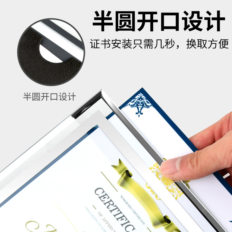 定制荣誉证书框A4授权书专利高档水晶玻璃画框奖状定做结业证件书外壳学校相框聘书裱框桌面摆台公司竖款奖牌