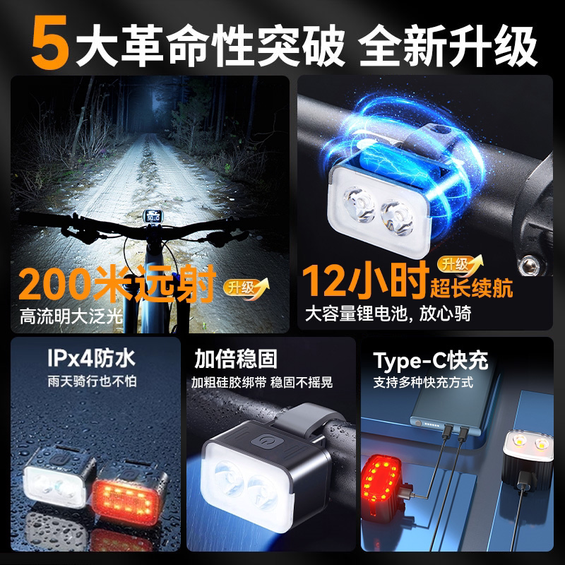 自行车灯照明前灯强光夜骑尾灯山地公路儿童单车灯骑行装备长续航
