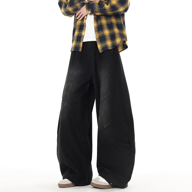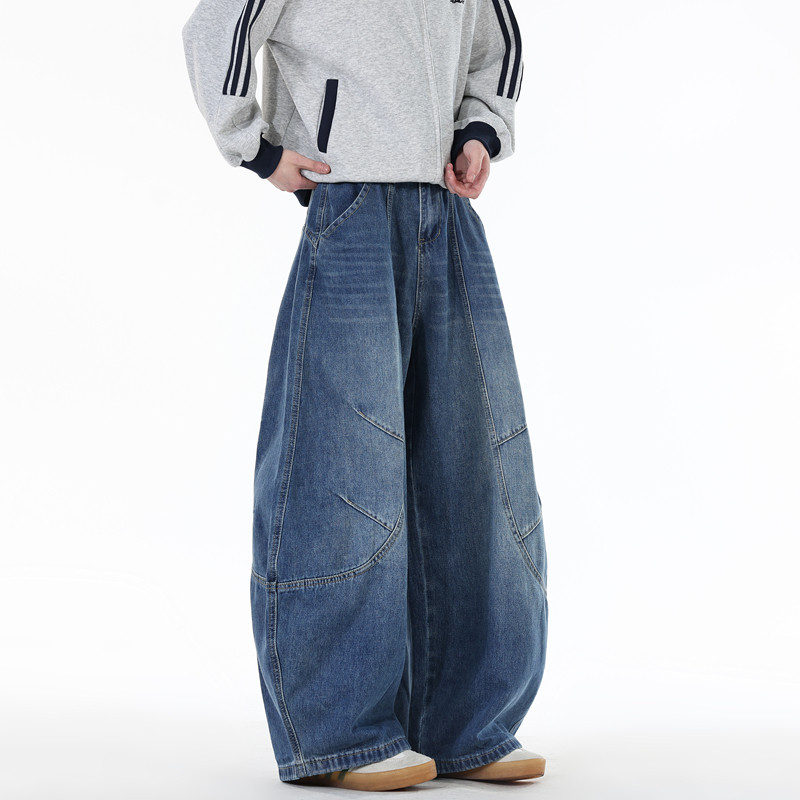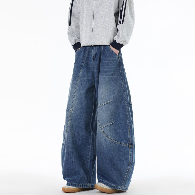 阔腿牛仔裤男士2025春秋新款美式复古宽松大码冬季休闲直筒裤子男