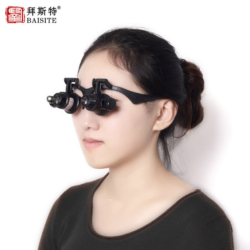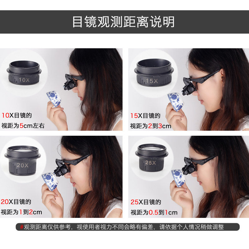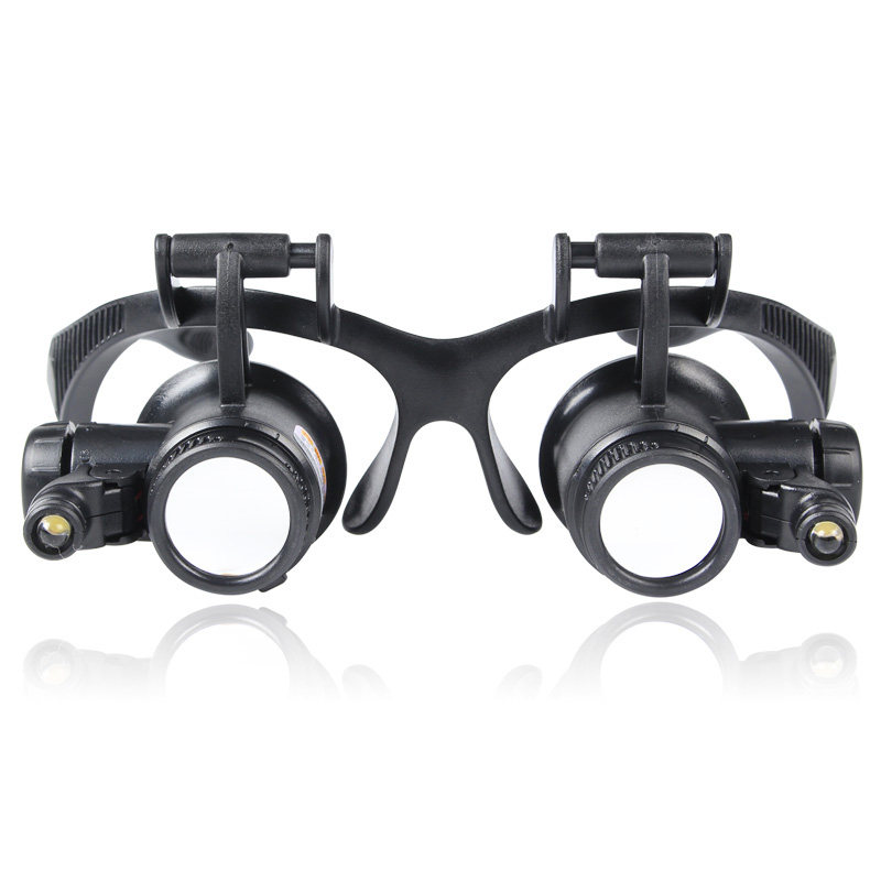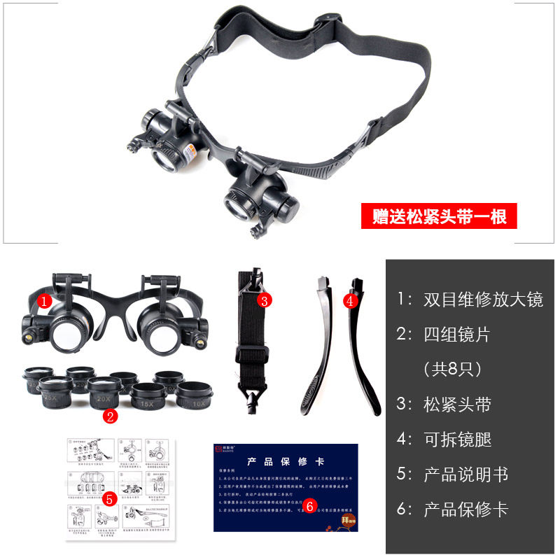 双目头戴放大镜10倍15倍20倍25带灯维修电路R板钟表手机眼罩鉴定