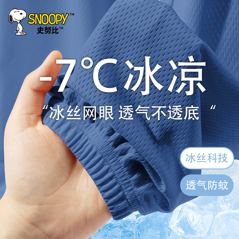 史努比儿童裤子2025新款男大童夏季薄款防蚊裤蓝色长裤男童冰丝裤