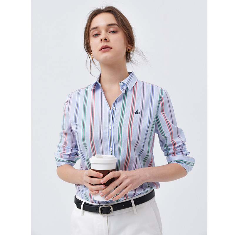 Navigare意大利小帆船长袖条纹衬衫女士春秋季新款休闲衬衣显瘦