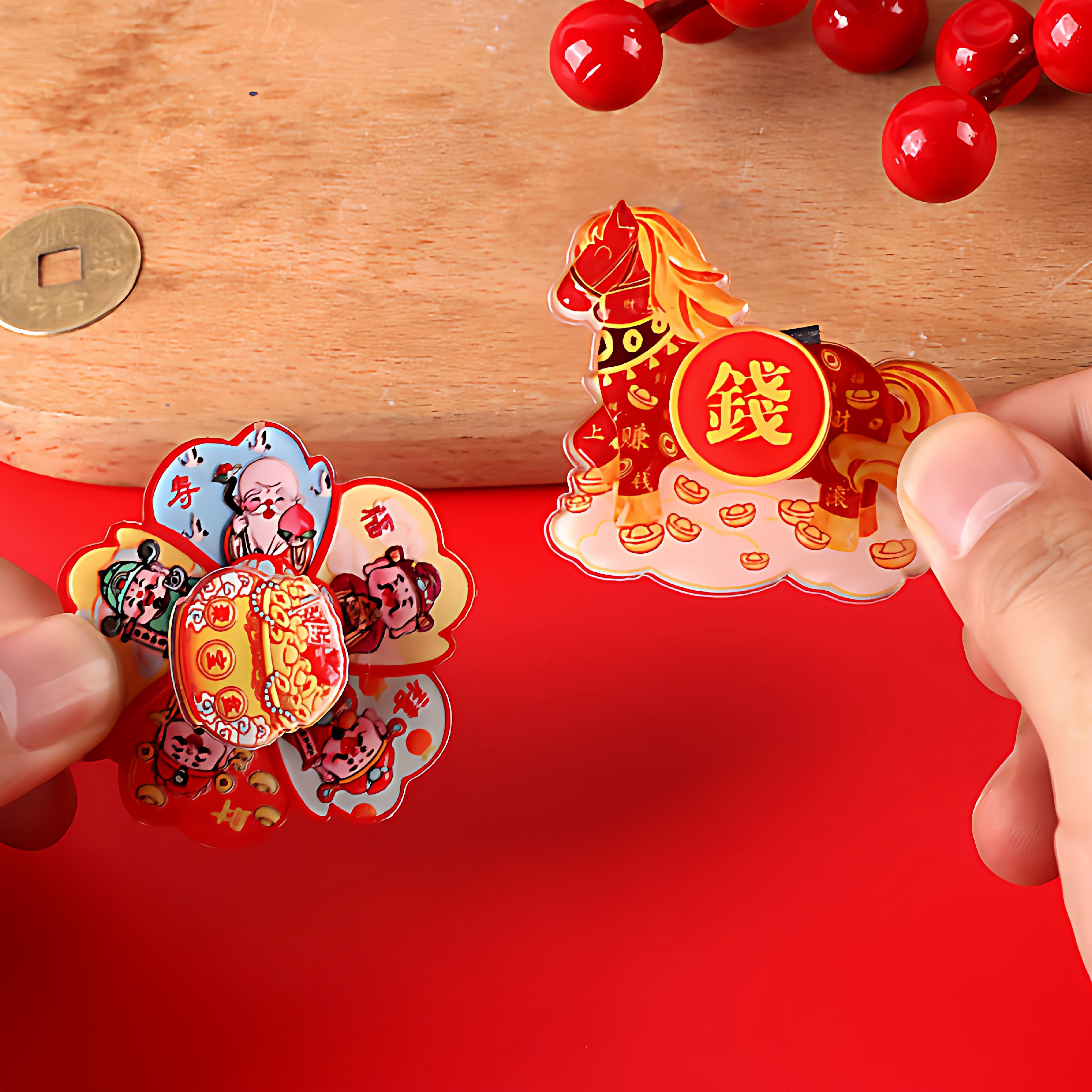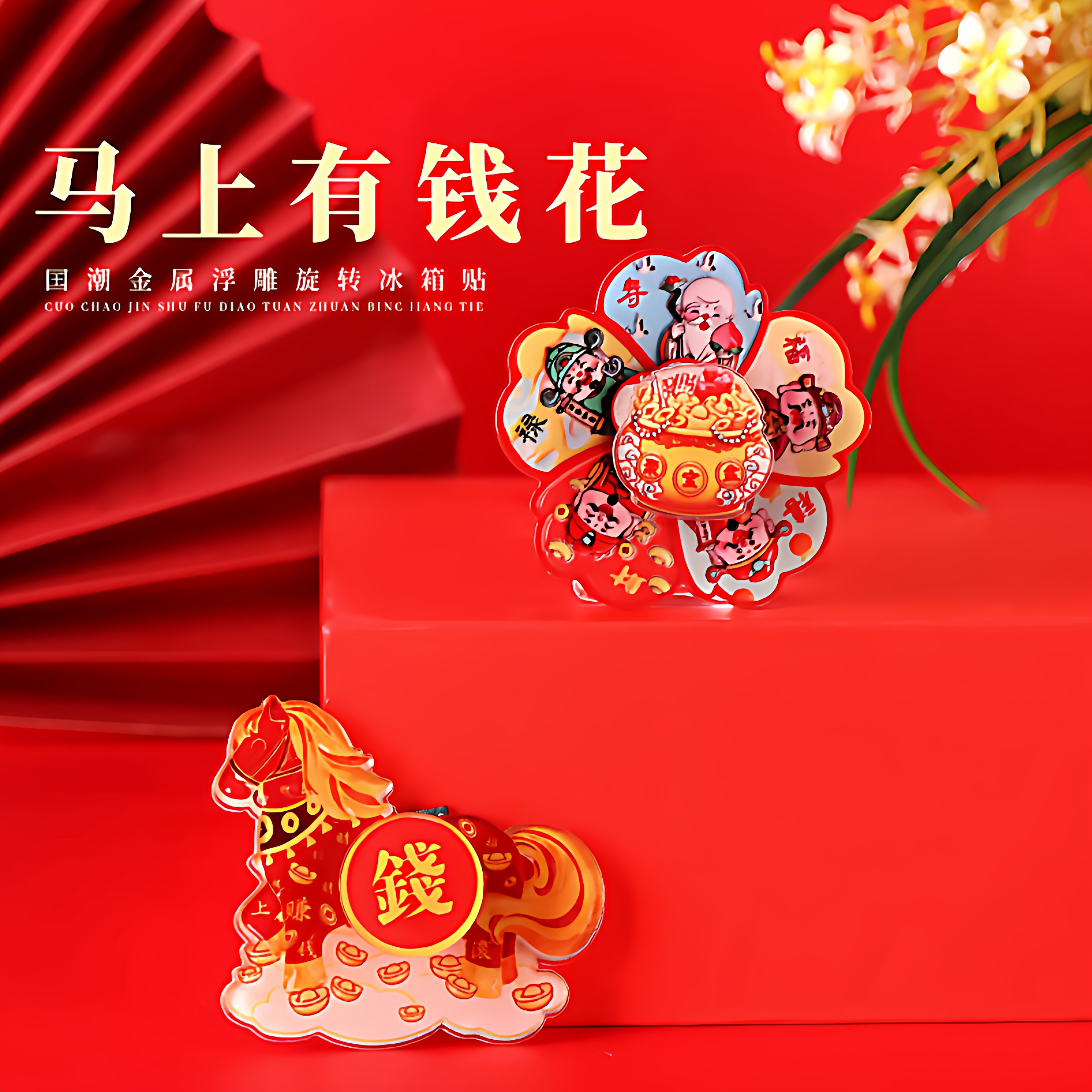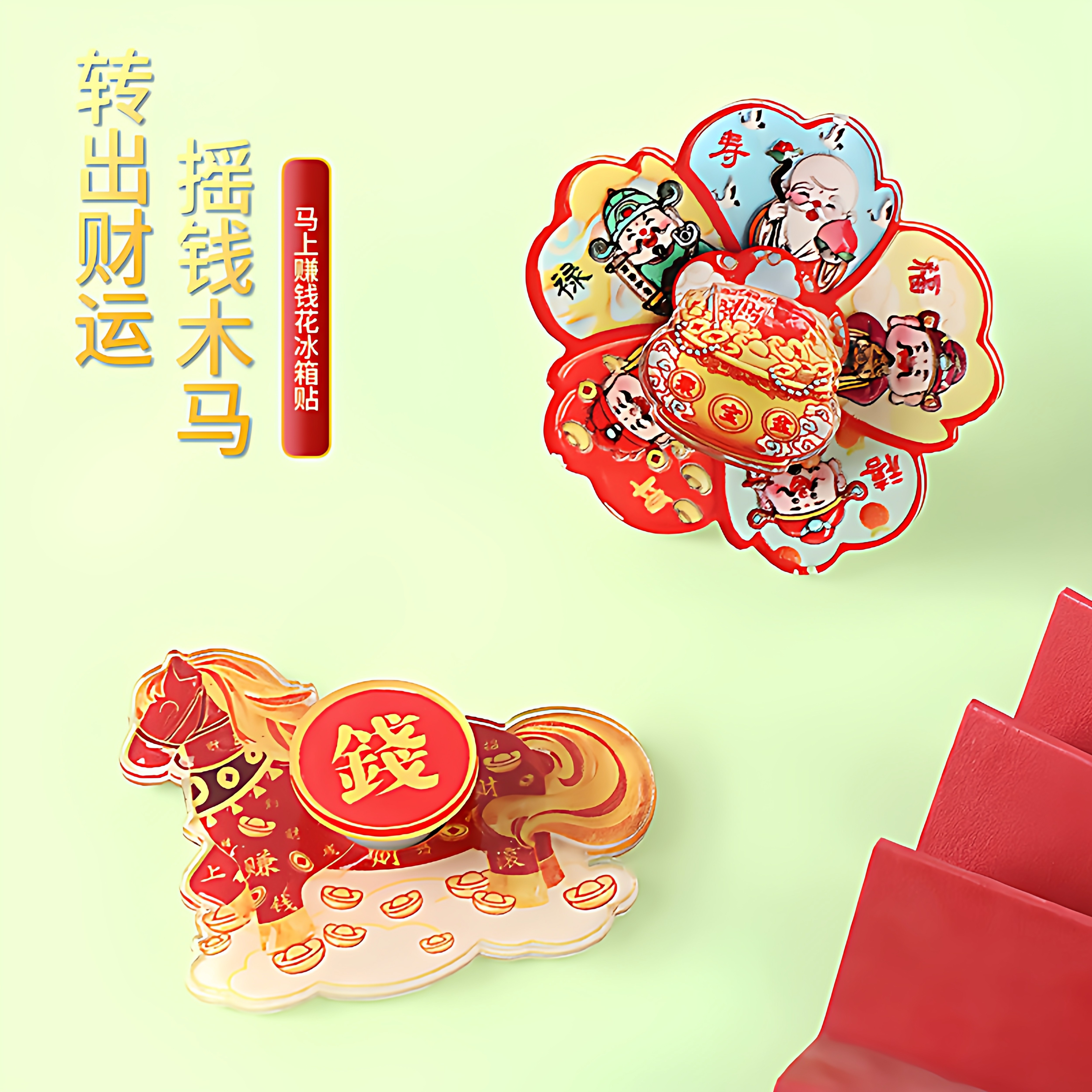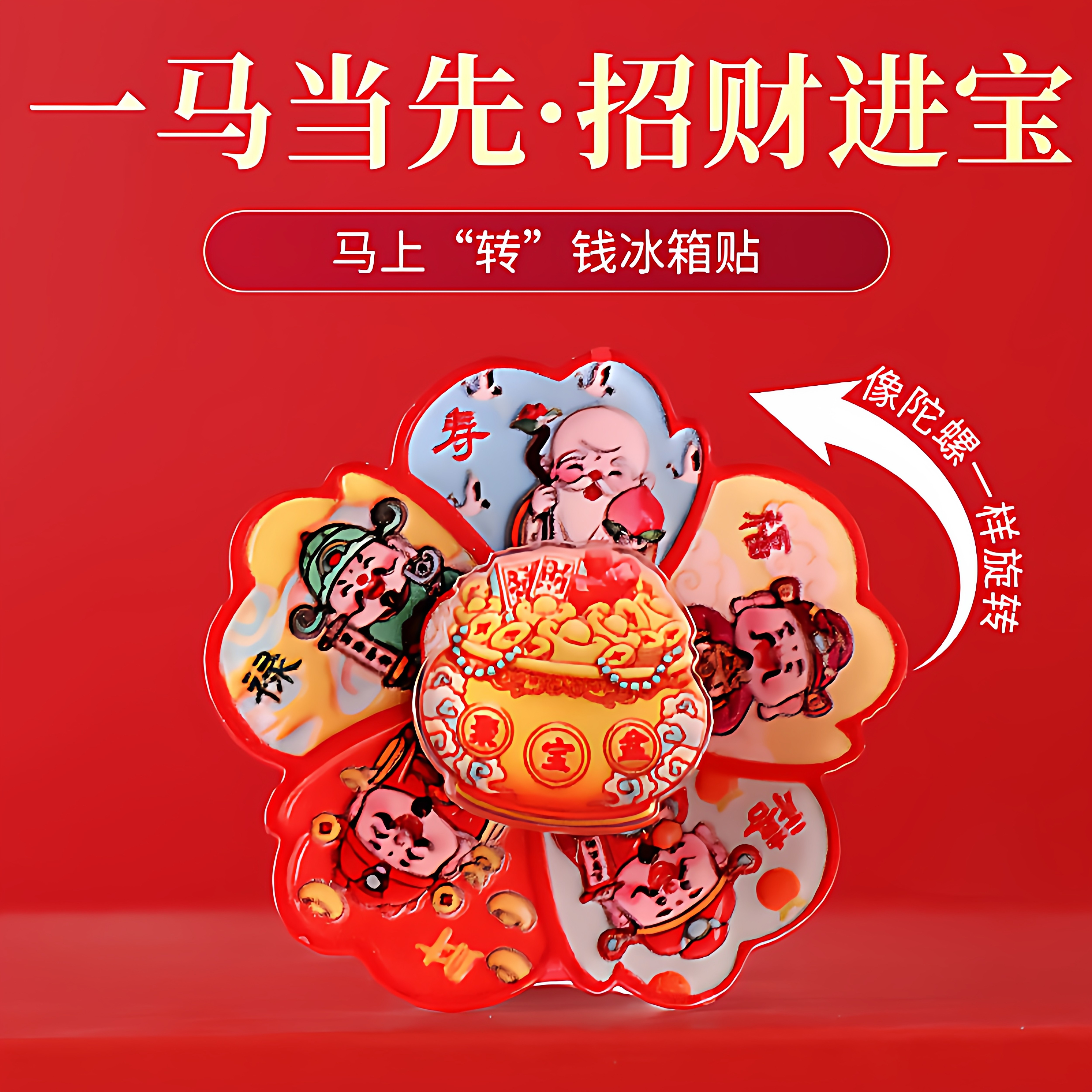 马上转钱磁吸旋转冰箱贴马年招财纳福新年治愈卡通可爱创意装饰贴