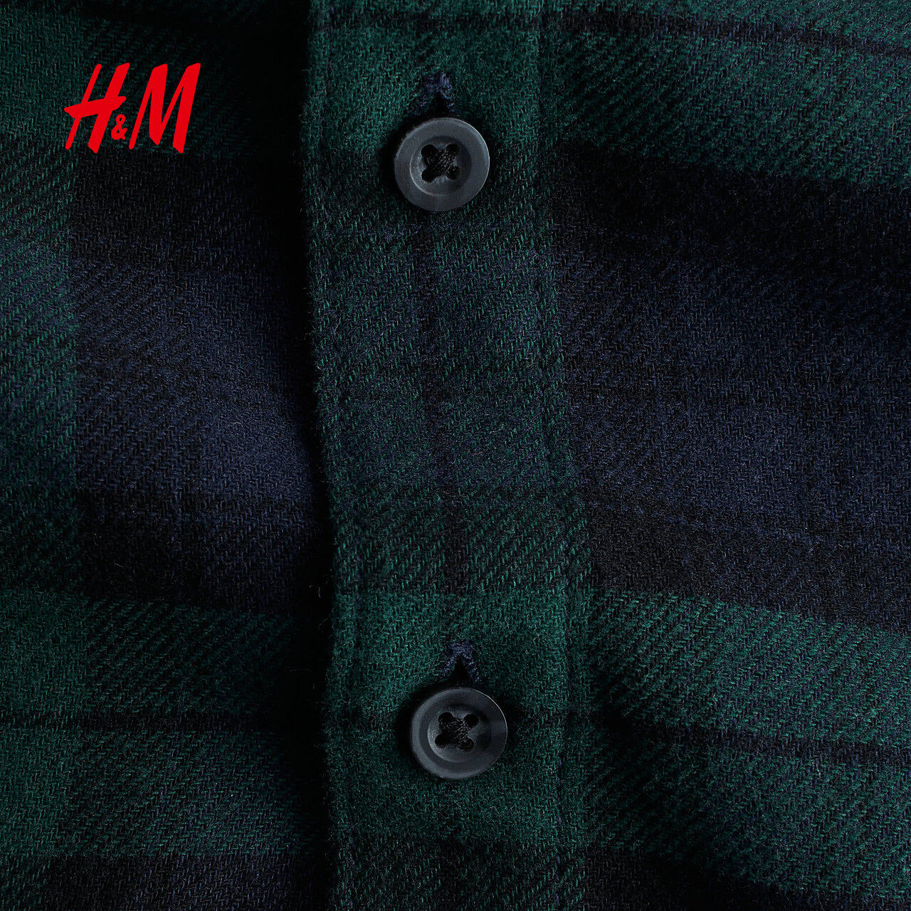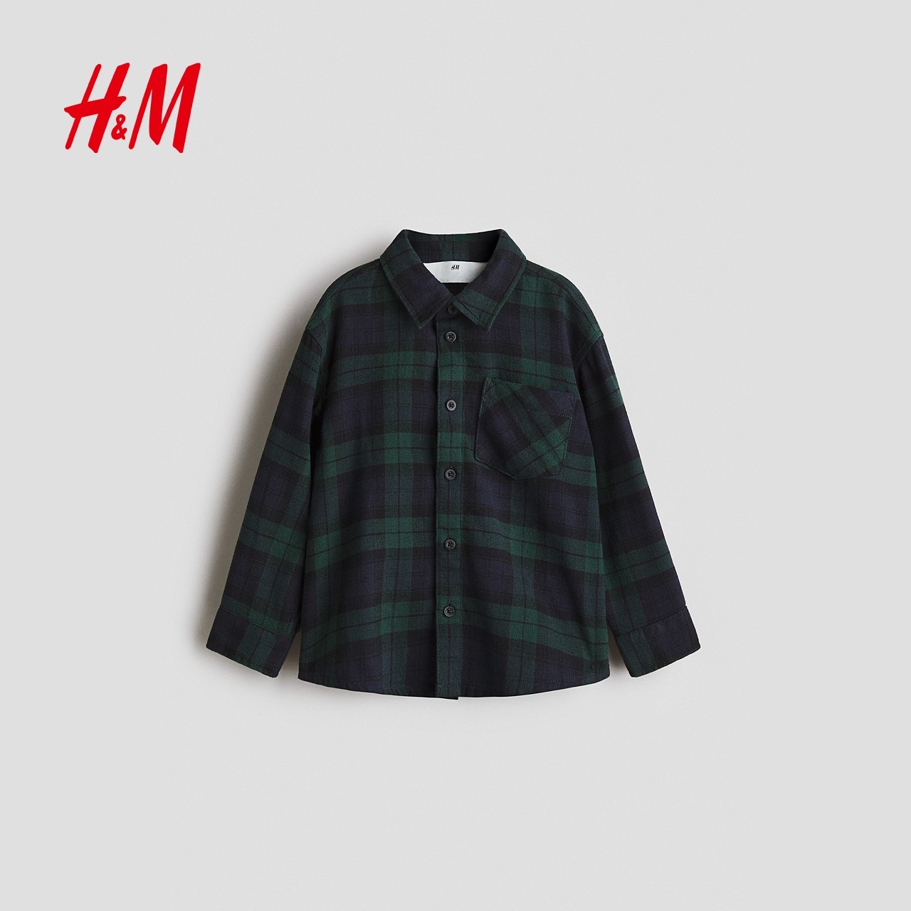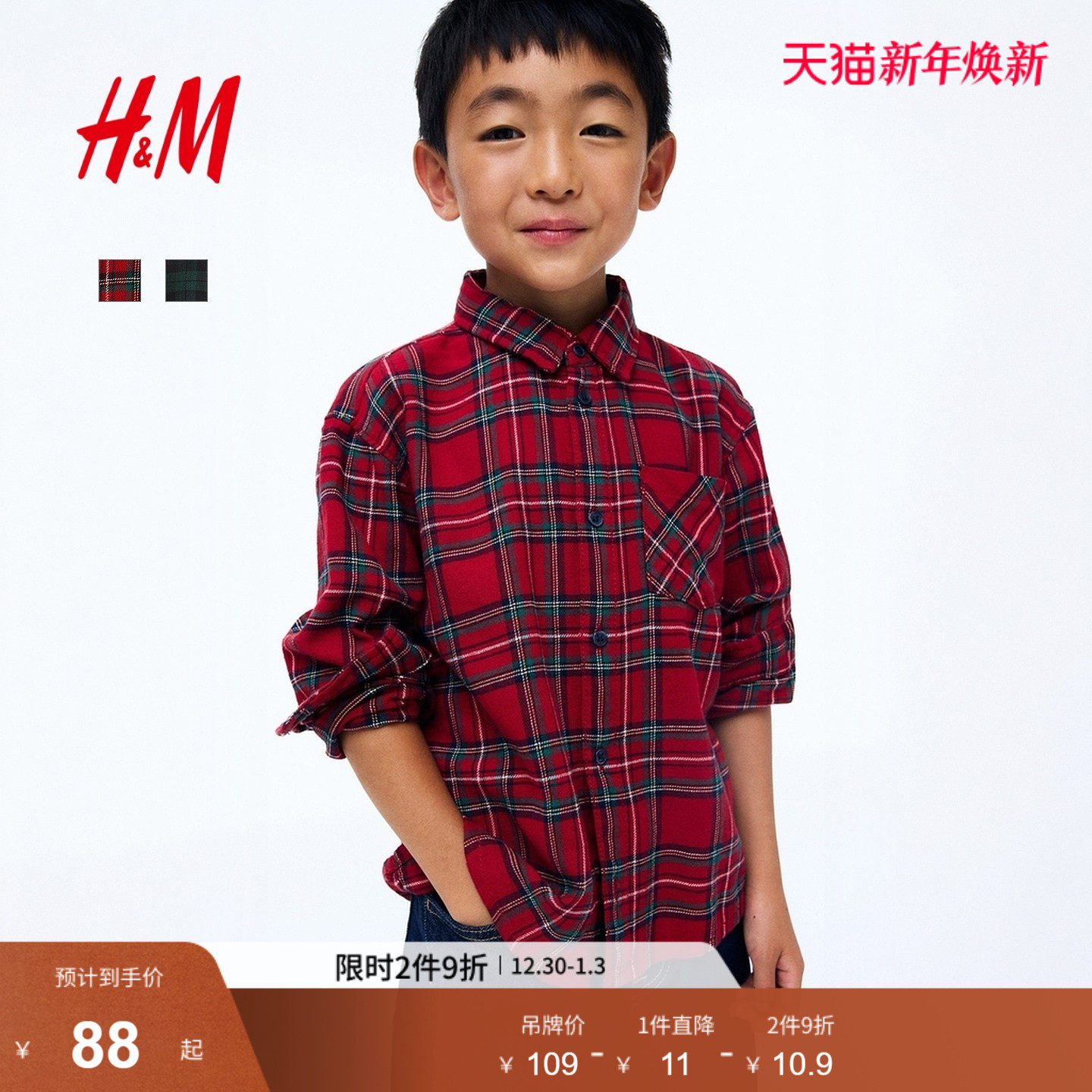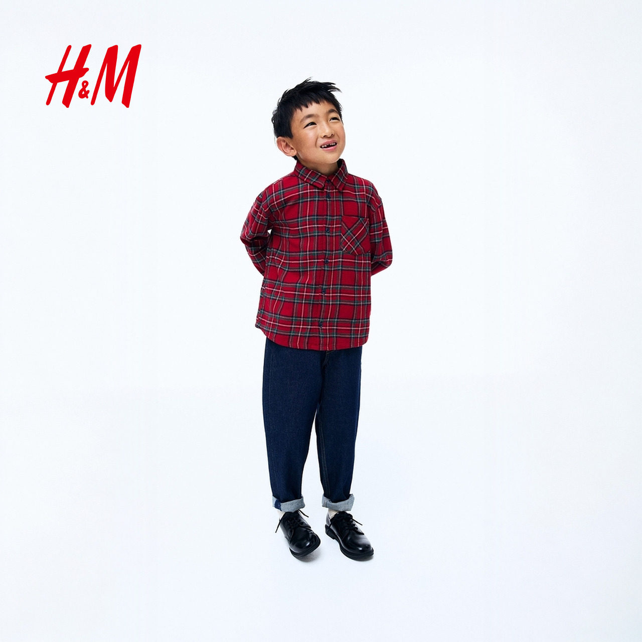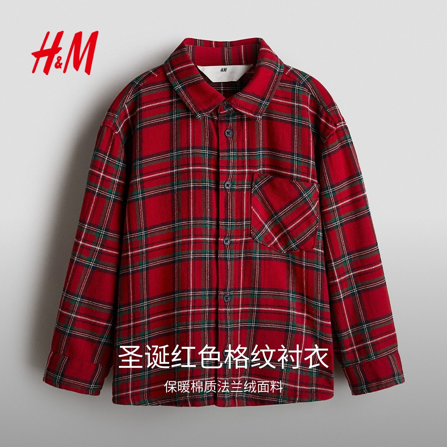HM童装儿童男童衬衫冬季法兰绒保暖新年红色格纹内搭衬衣1163548