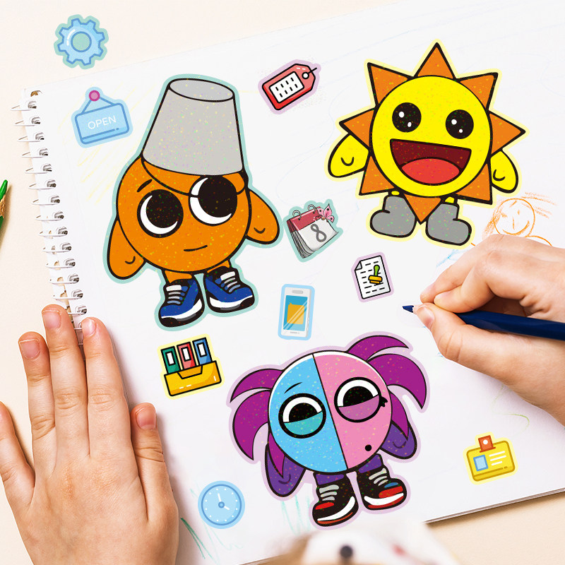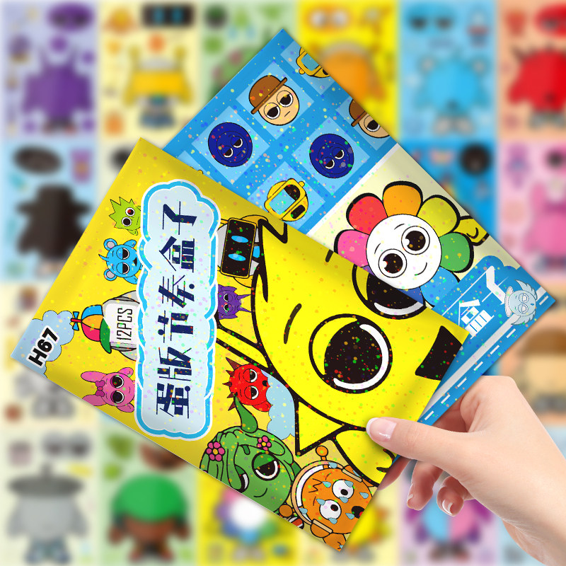 爆款网红蛋蛋版节奏小子卡通贴纸DIY换装组合呆萌贴画儿童早教娱乐益智自粘贴全镭射膜精装盒免裁剪易撕贴